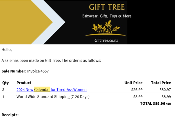 Laugh your fat ass off (Email sent to GiftTree NZ)