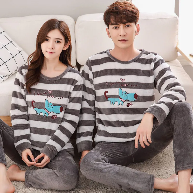 This home service suit is constructed from premium flannel fabric, known for its softness and excellent heat retention properties. The thickened material provides an extra layer of warmth, making it ideal for chilly winter evenings. The suit features a classic design with a button-up front, long sleeves, and a relaxed fit, ensuring comfort and ease of movement.
