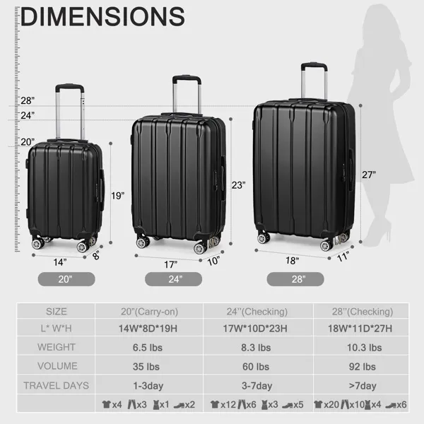 Perfect for All Types of Travel: Whether you’re taking a short business trip or going on a week-long vacation, this luggage