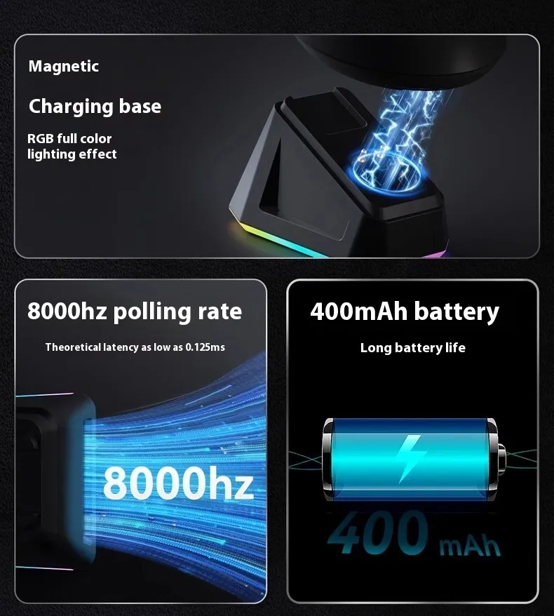 Upgrade your setup with the Three-mode Game Mouse, designed for gamers, office workers, and tech enthusiasts. With wired, wireless, and Bluetooth modes, this mouse offers maximum flexibility, letting you switch between devices and connection types seamlessly.