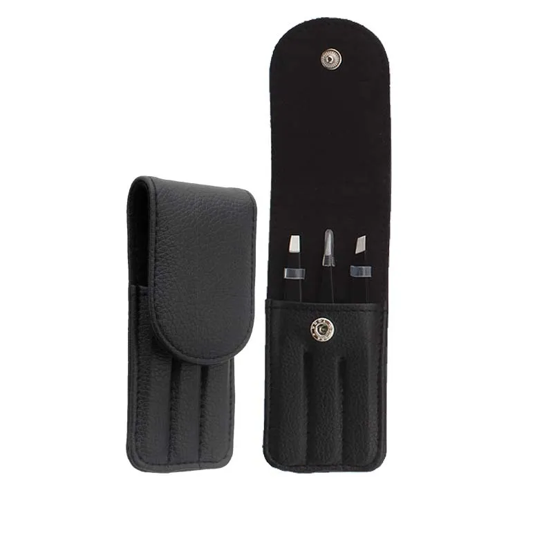 The Three-Piece Eyebrow Tweezers Set is compact and lightweight, making it perfect for travel or on-the-go grooming. The set comes in a convenient case that keeps the tweezers organized and protected, so you can easily carry it in your makeup bag or purse. Whether you need a touch-up during a trip or want to maintain your brows between salon visits, this set ensures you have the tools you need for flawless eyebrows wherever you are.