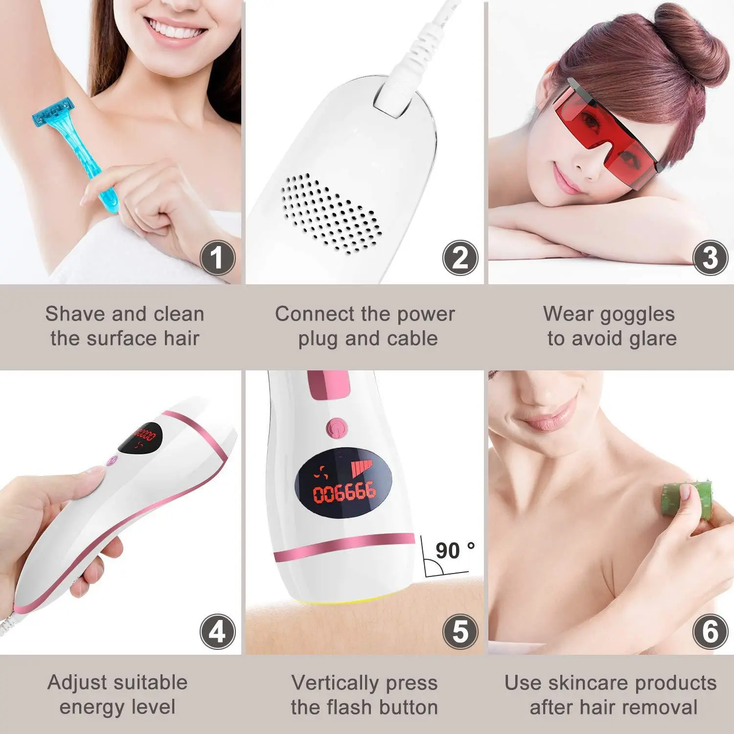 The Times Hair Remover Bikini Laser Remover utilizes pulsed light technology, which safely targets the hair follicle, disrupting the growth cycle. This process, called selective photothermolysis, ensures that the hair is removed without damaging the surrounding skin. Unlike shaving or waxing, which can irritate the skin or cause cuts, this device offers a precise, safe, and effective method of hair removal.