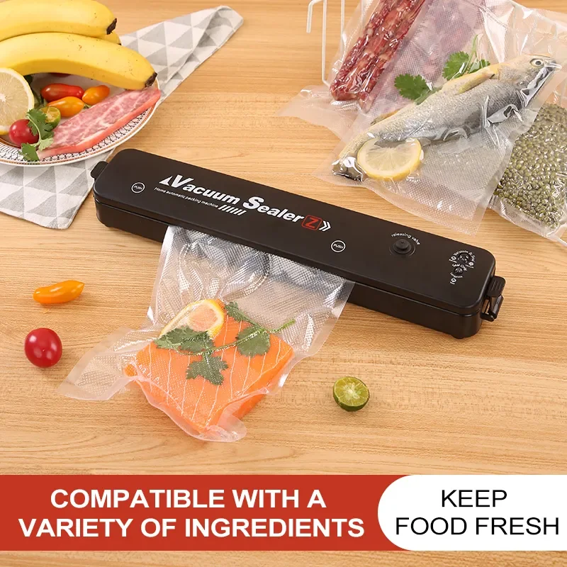 The TINTON LIFE Vacuum Sealer Machine is a versatile, user-friendly food packaging solution designed to extend the freshness of your food. With support for both 220V and 110V power, this vacuum sealer is suitable for homes worldwide. Ideal for preserving fruits, vegetables, meats, and more, the machine provides an airtight seal to lock in freshness and prevent freezer burn. Available in sleek black, it adds a modern touch to any kitchen while offering powerful, reliable food preservation. As a bonus, this machine comes with 10 free vacuum bags, providing an all-in-one solution for convenient, effective food storage.