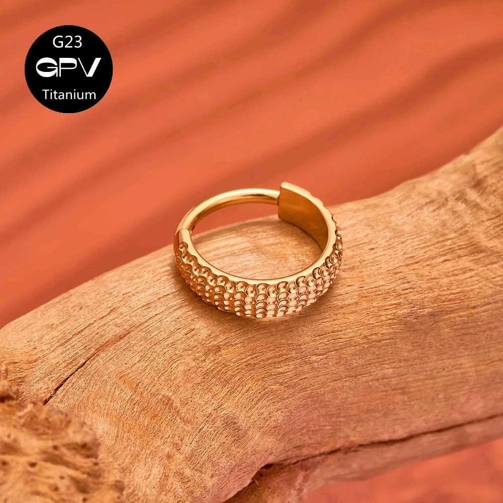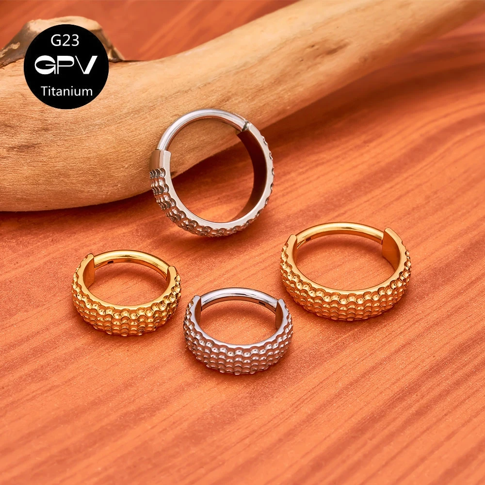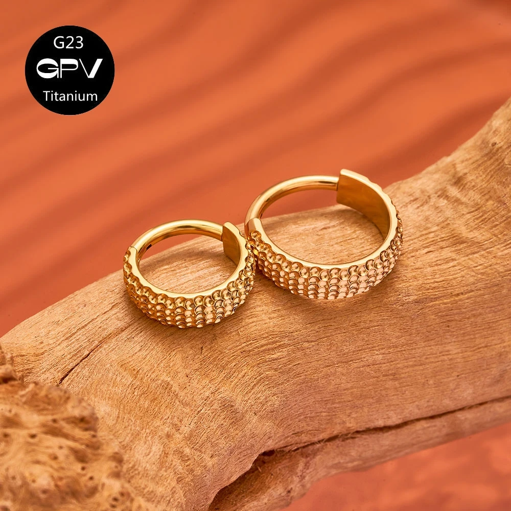 Elevate your jewelry collection with the G23 F136 Titanium Ring Earrings. Their combination of G23 titanium, vacuum gold plating, and crater surface design makes them the perfect blend of modern fashion and durability. With their unique style and lightweight, comfortable fit, these earrings are perfect for both men and women who enjoy bold, contemporary accessories.