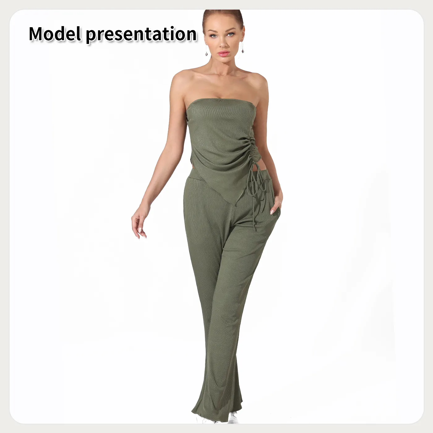 Made from soft, breathable fabrics, this top and pants set ensures comfort throughout the day. The relaxed fit of the pants and the flattering top provide a look that is both stylish and easy to wear. Whether you're pairing it with sneakers, sandals, or heels, this set is perfect for any occasion, from casual brunches to lounging at home.