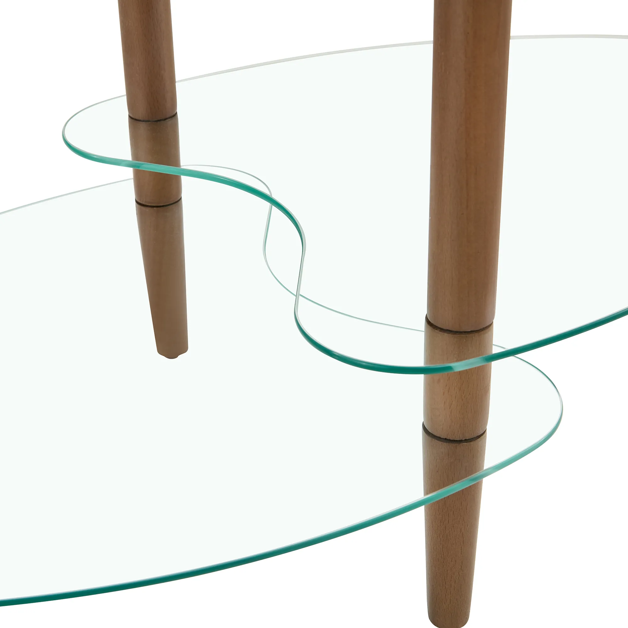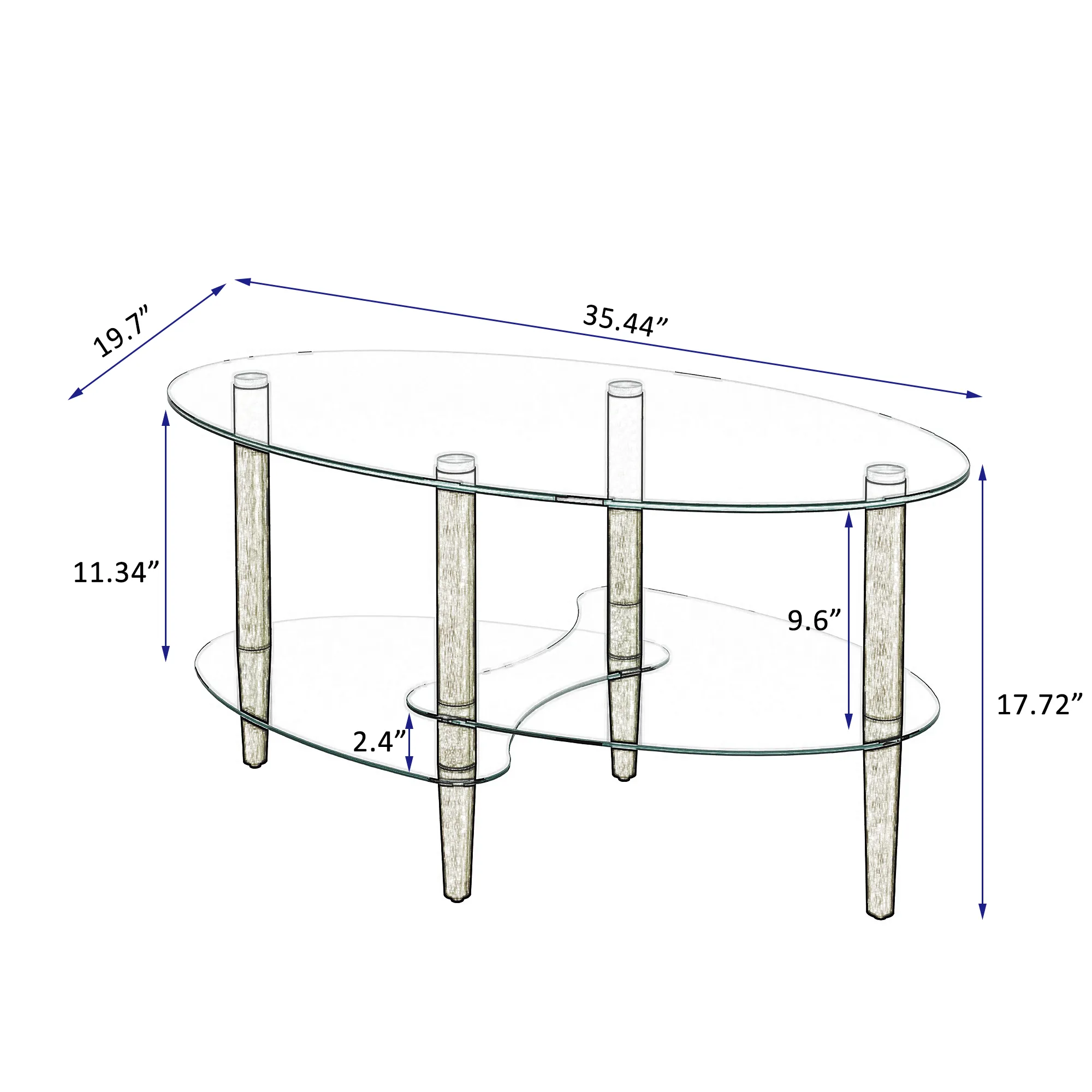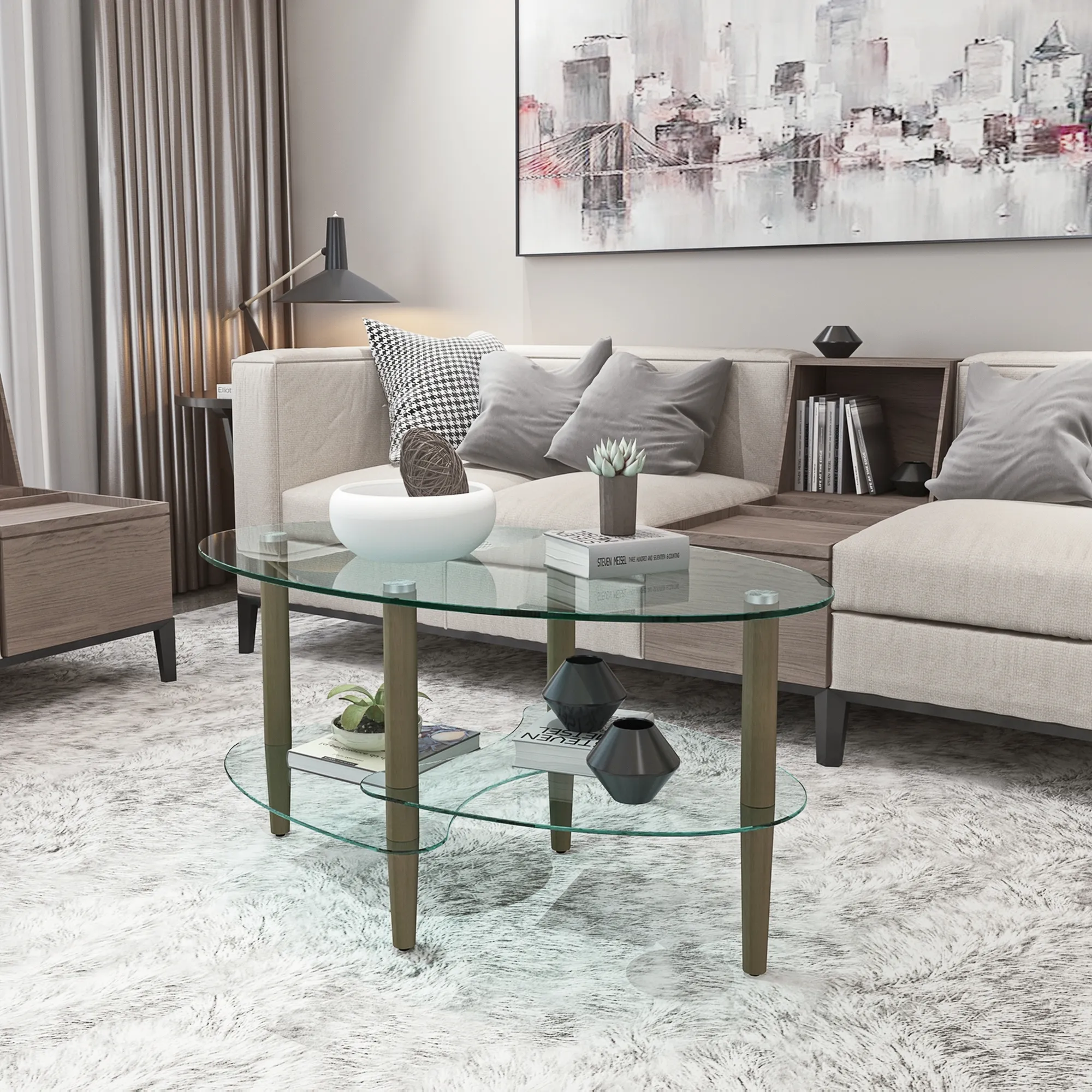 Transparent Oval Glass Coffee Table, Modern Living Room Table, Oak Leg Coffee Table, Three-layer Glass Table