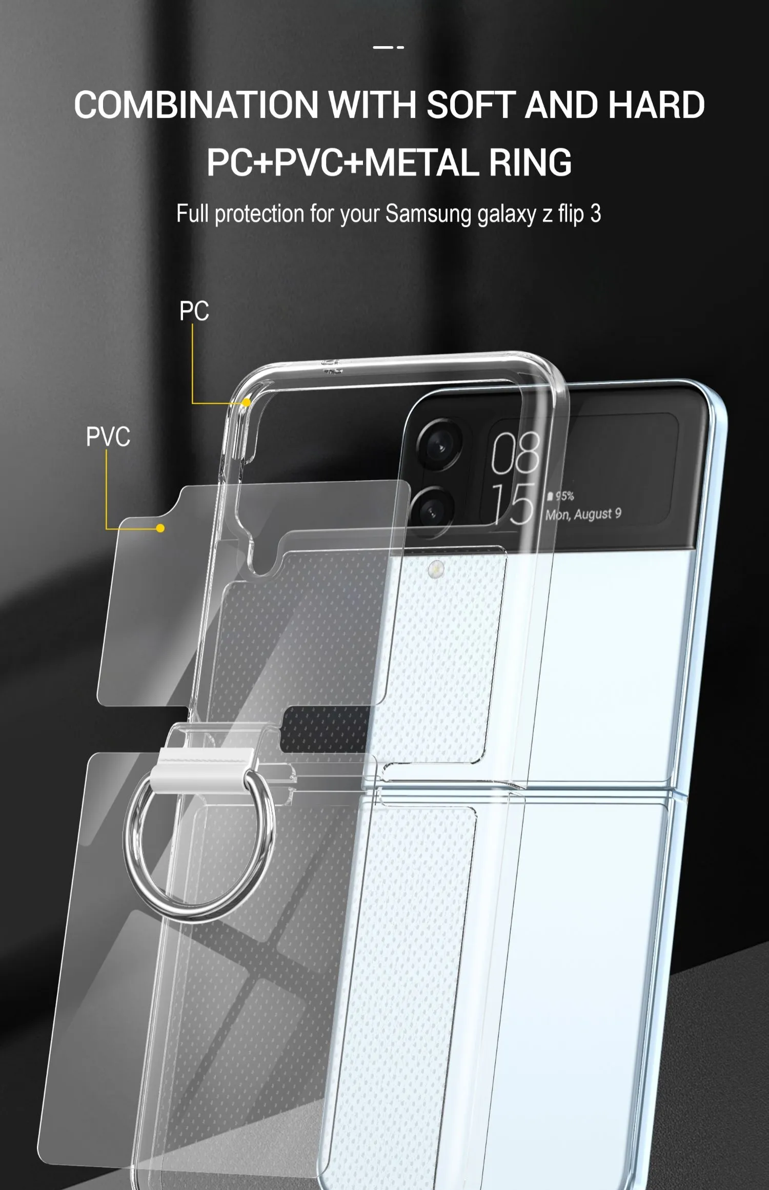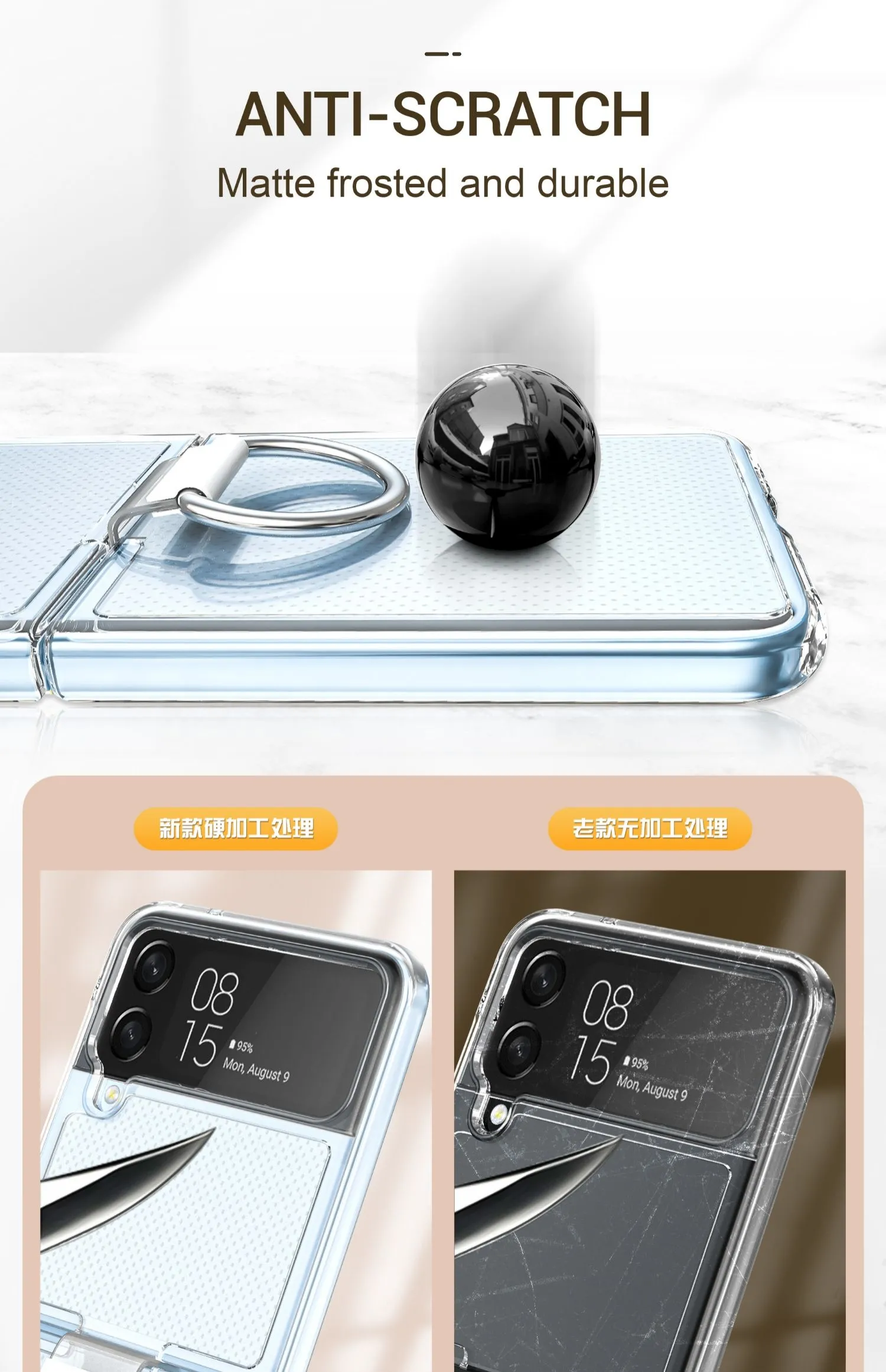 Transparent Protective Case for Galaxy Z Flip4 – Fastened Ring