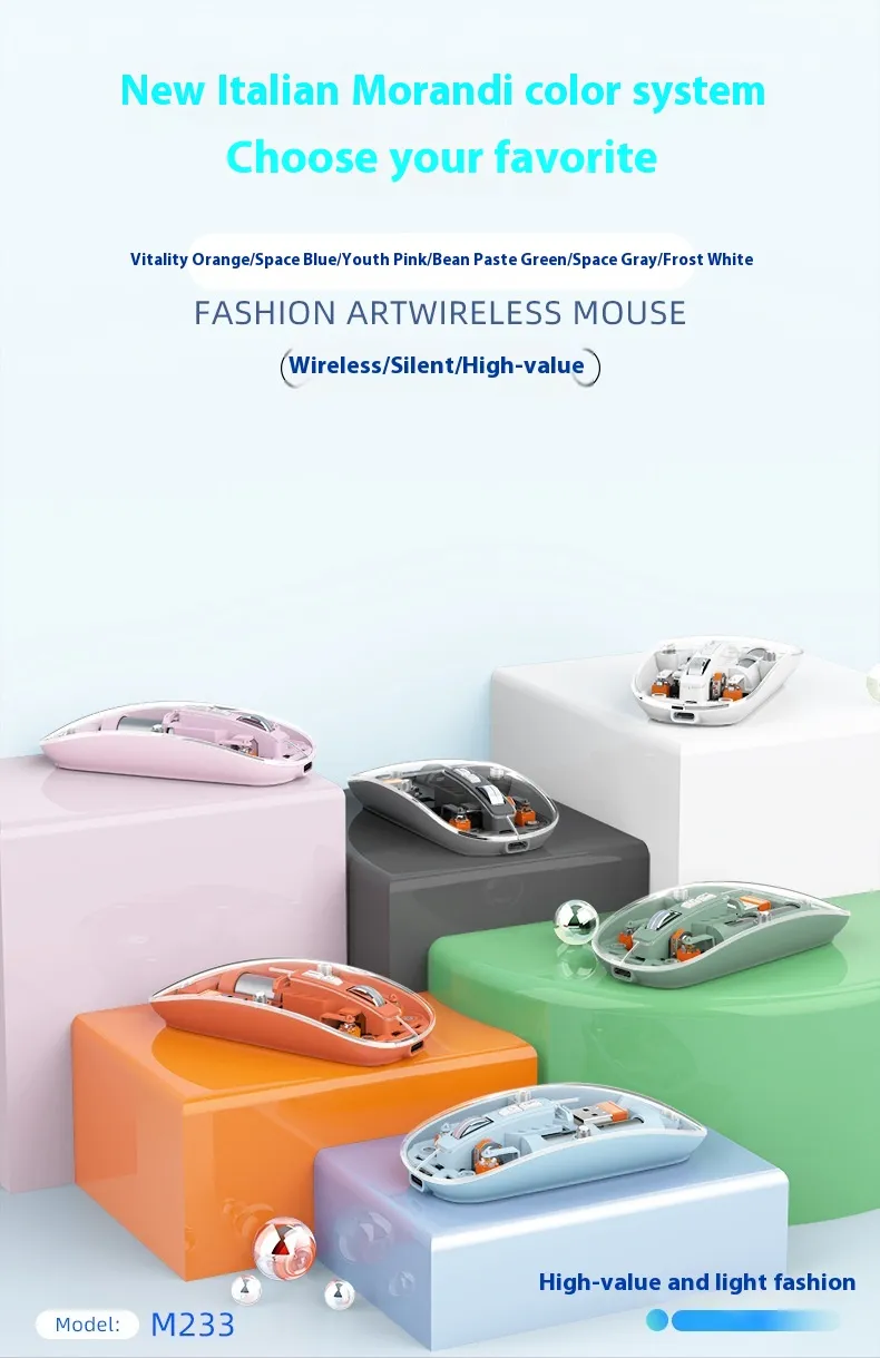 Enhance your workspace with the Transparent Wireless Mouse, combining style, functionality, and convenience for everyday use at home or in the office.