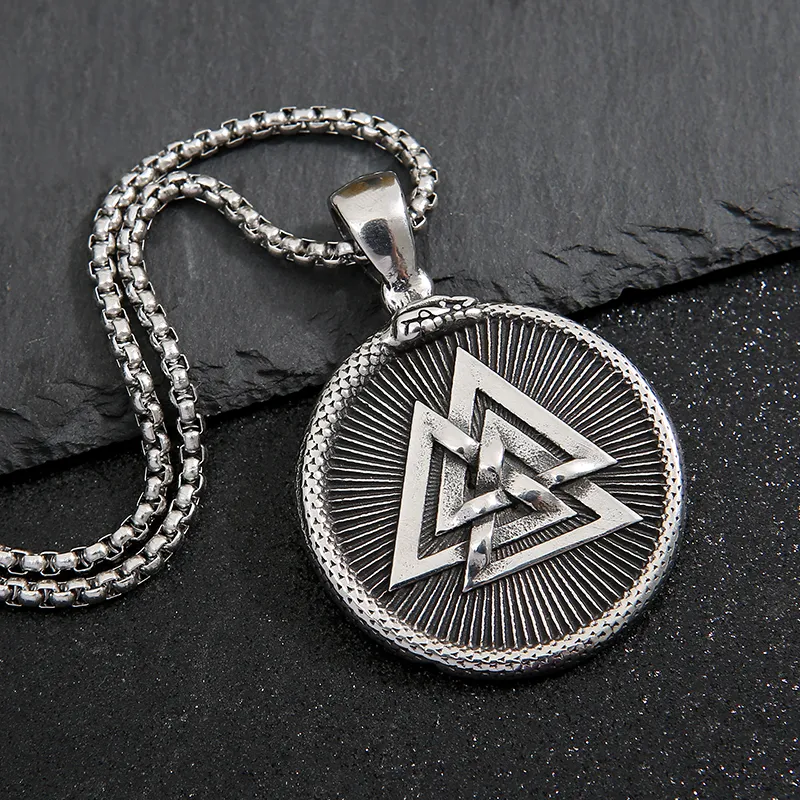 Triangle Rune Logo Stainless Steel Pendant Vintage Necklace – A Symbol of Power, Protection, and Timeless Style
