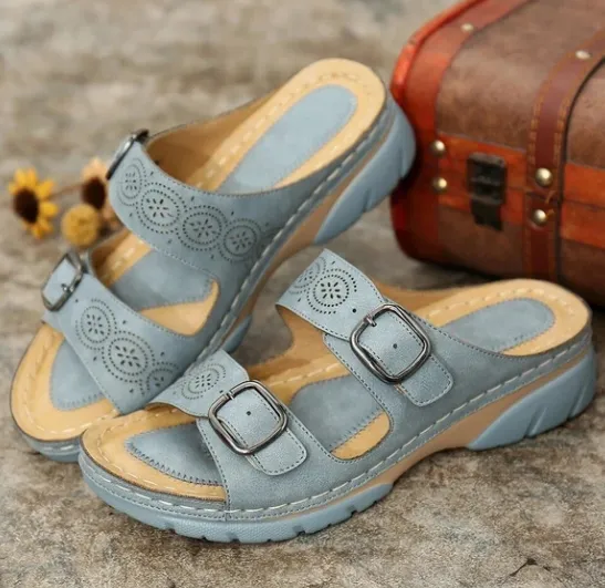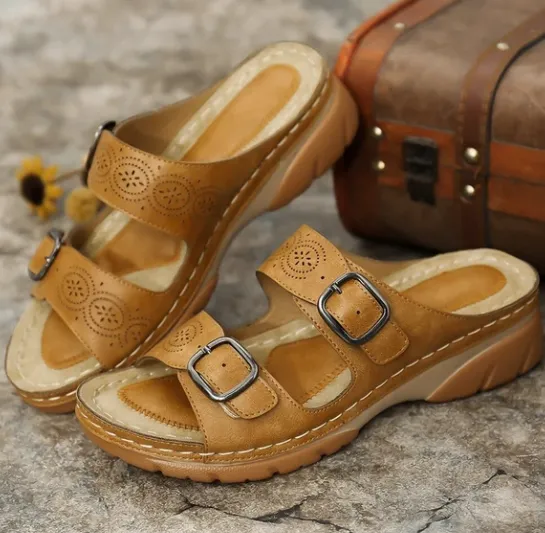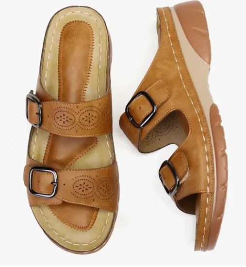 Two-tone bottom buckle sandals and slippers