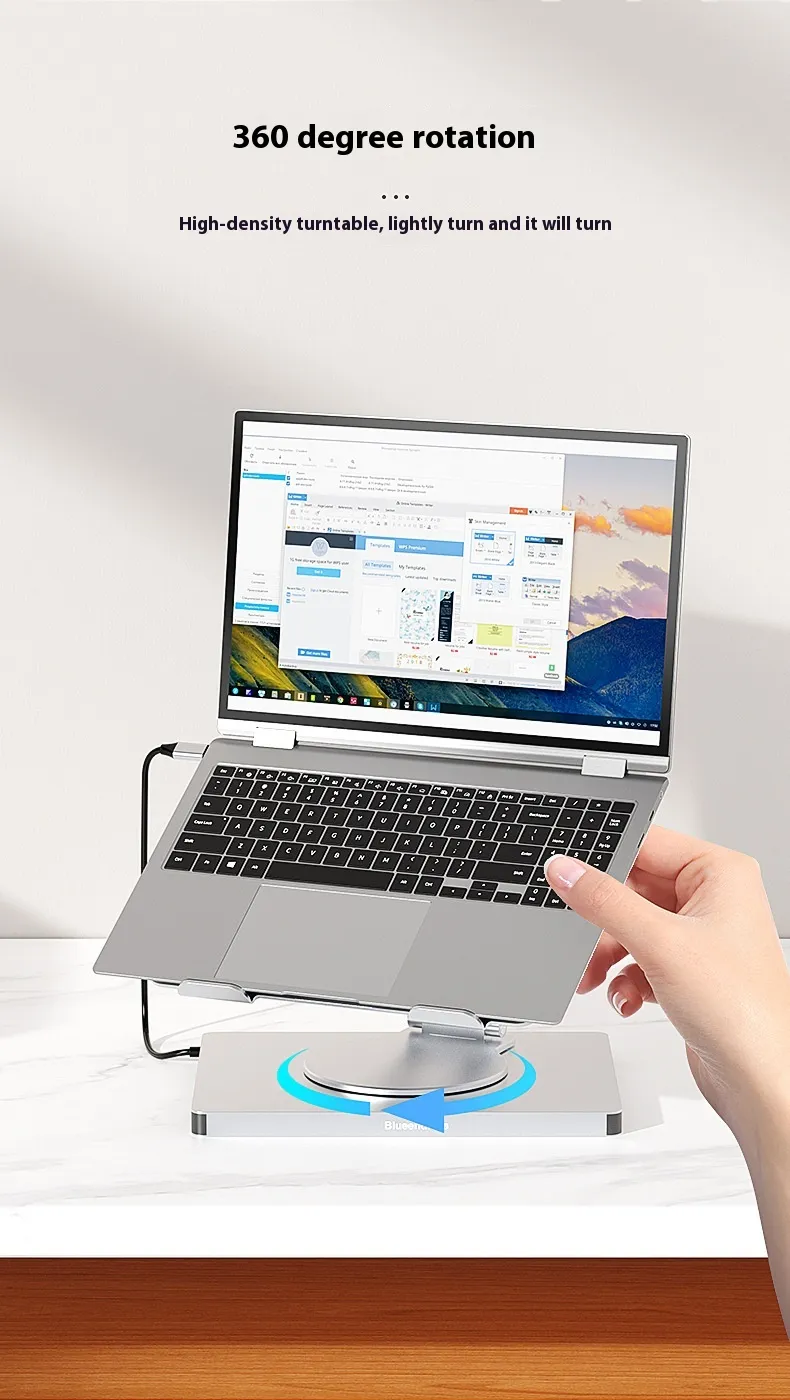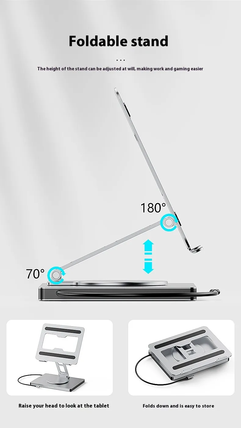 This Type-C Extended Rotating Folding Laptop Stand is designed to bring comfort and flexibility to your daily work and study. Featuring a 360° rotating base, it allows you to adjust angles freely, ensuring the most ergonomic posture for typing, reading, or video calls. Say goodbye to neck and back strain while enjoying a healthier working environment.