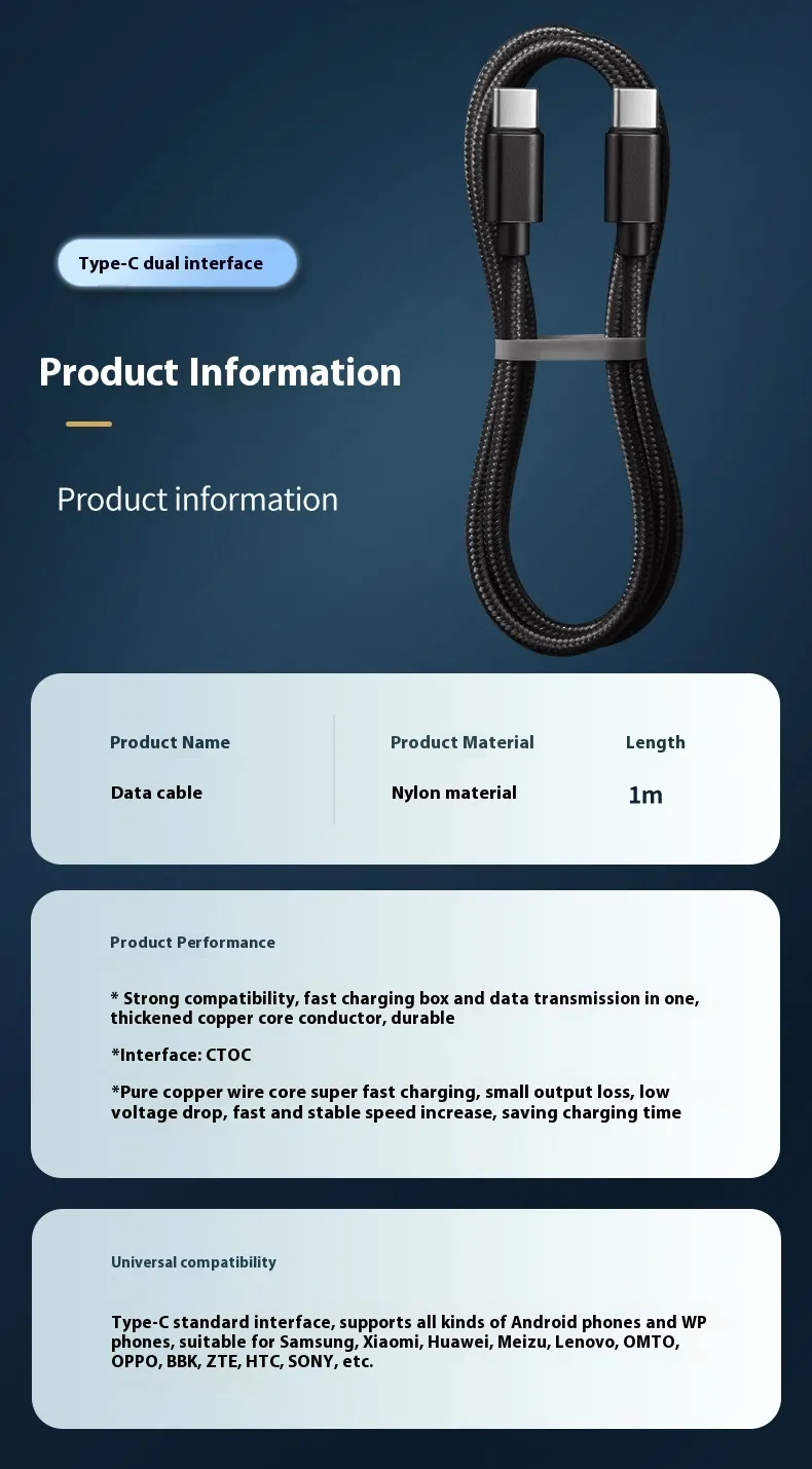 Made from premium materials, the Type-C cable is durable, tangle-resistant, and built to last. Its reinforced connectors prevent wear and tear, while the flexible design ensures easy handling and storage. Capable of delivering fast charging without overheating, it safeguards your devices while keeping them fully powered in less time.