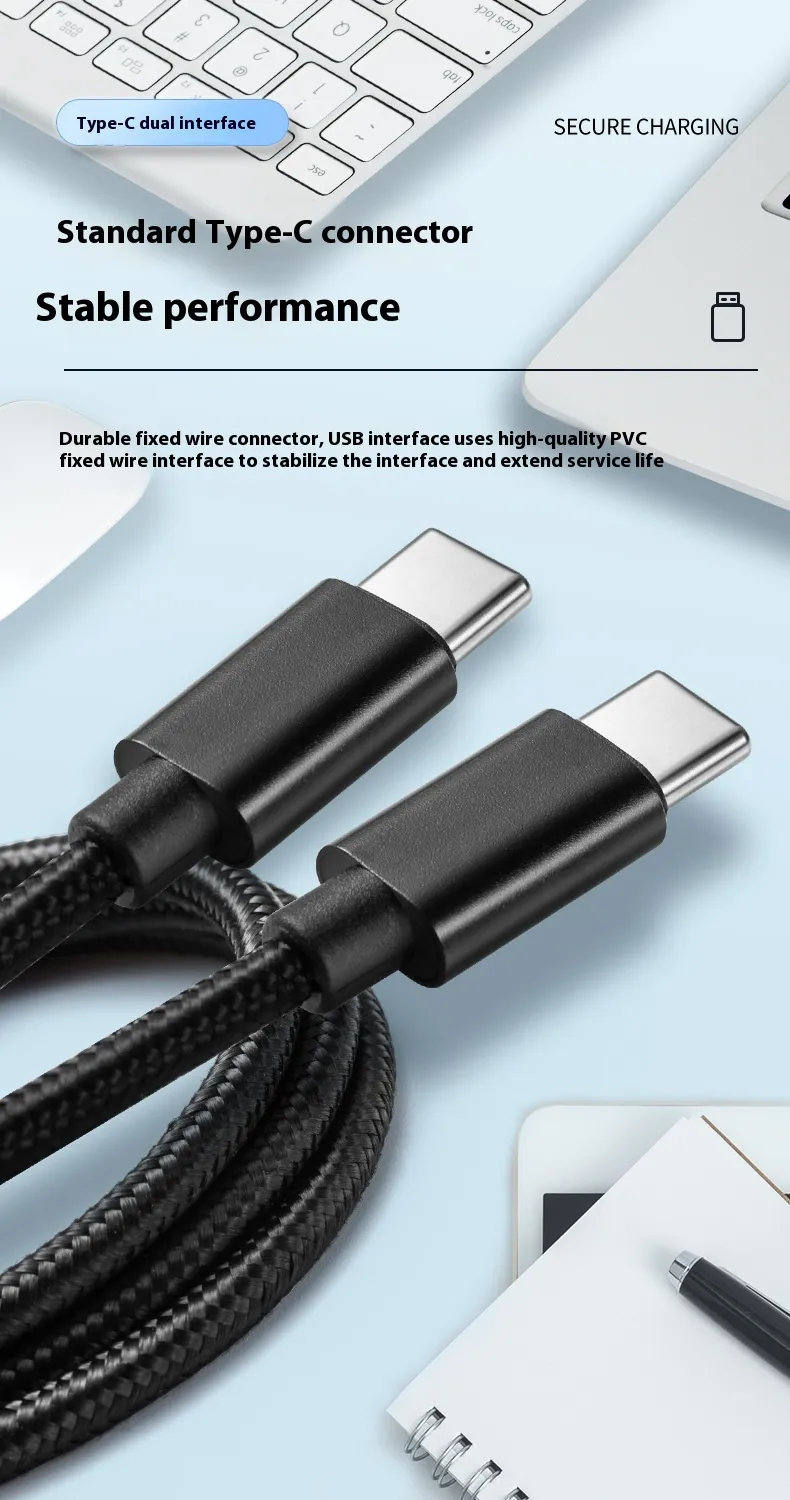 Made from premium materials, the Type-C cable is durable, tangle-resistant, and built to last. Its reinforced connectors prevent wear and tear, while the flexible design ensures easy handling and storage. Capable of delivering fast charging without overheating, it safeguards your devices while keeping them fully powered in less time.