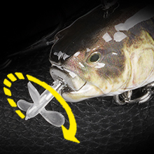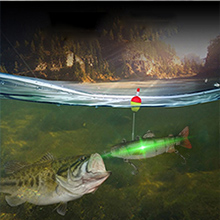- Propeller-driver fishing lure automatic activates after being submerged in water for few seconds. The built-in led light turns green while the motor is active.