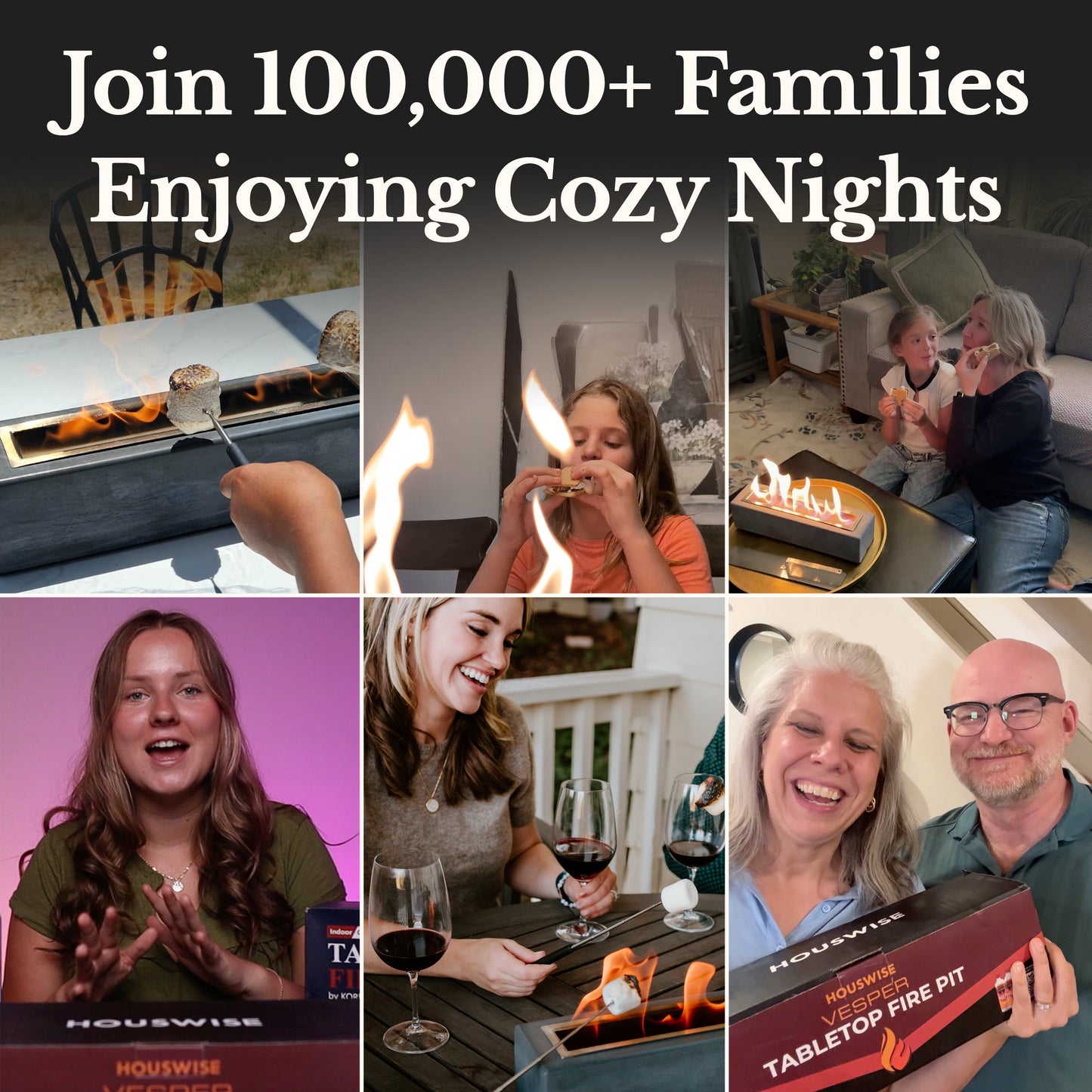 Our clean-burning ethanol fuel is safe for indoor use and even for roasting treats. Enjoy the cozy ambiance without worry.