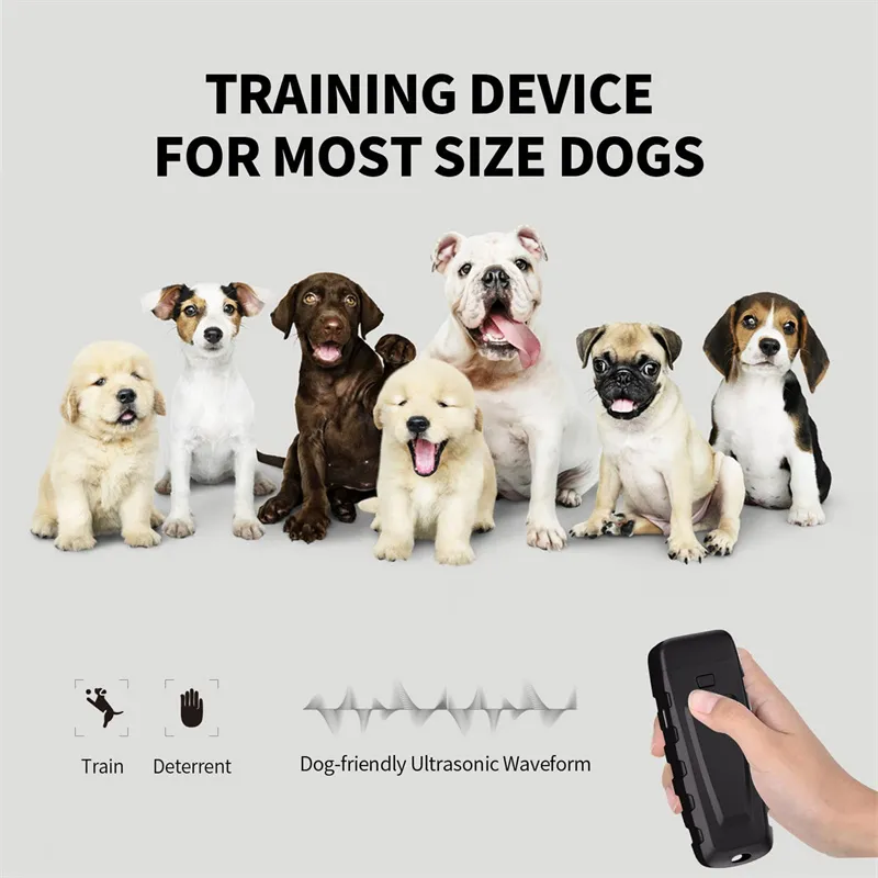 This handheld device is compact, lightweight, and easy to use, making it perfect for on-the-go training. It is safe for all dogs and works by targeting unwanted barking without causing harm, stress, or pain to your pet. Whether you're training a puppy, correcting an adult dog's behavior, or simply maintaining control over barking, this ultrasonic device offers a reliable solution.