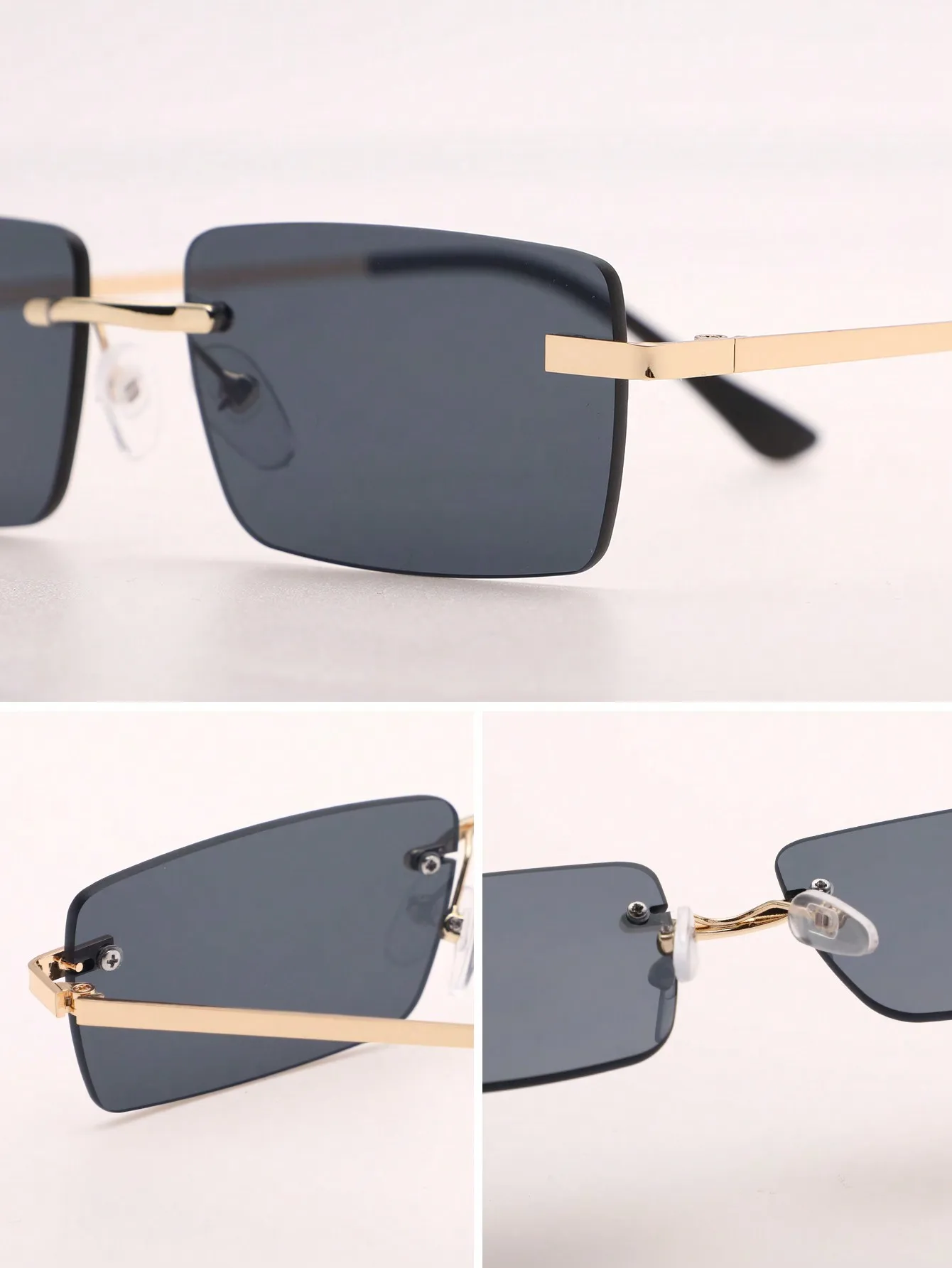 Enhance Your Summer Look with Unisex Metal Square Frame Rimless Sunglasses