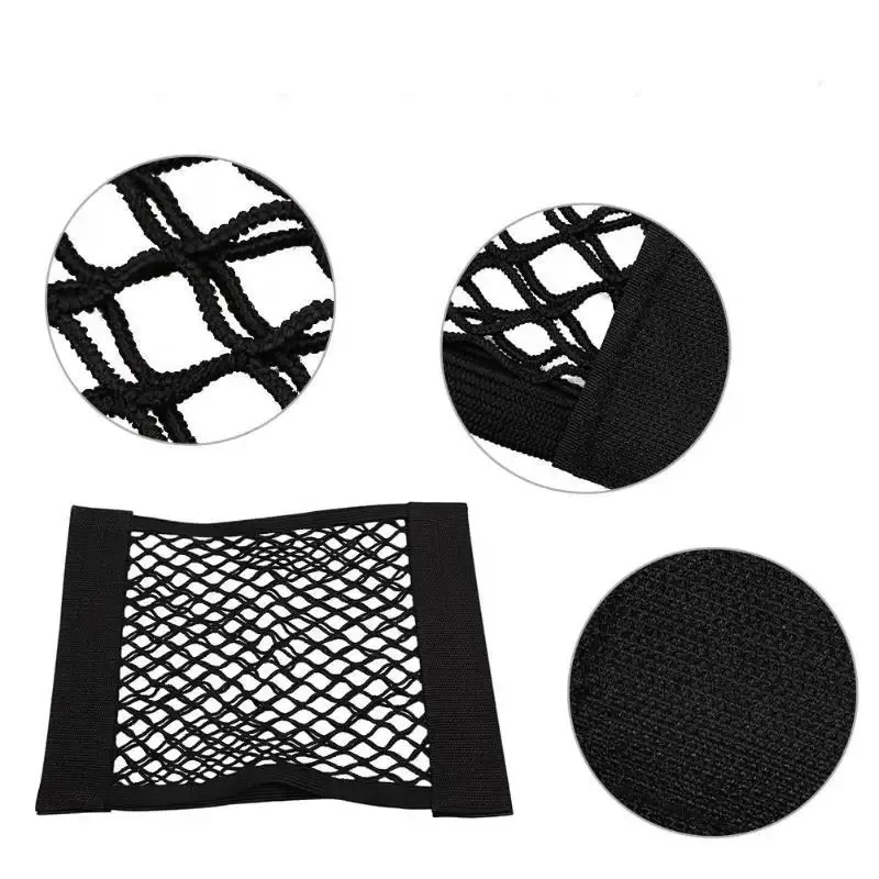 The Universal Double Mesh Car Storage Bag is suitable for various storage needs, offering an easy way to keep your trunk organized and essential items secure. Its durable mesh design and compatibility with various vehicles make it an essential accessory for daily and emergency use.