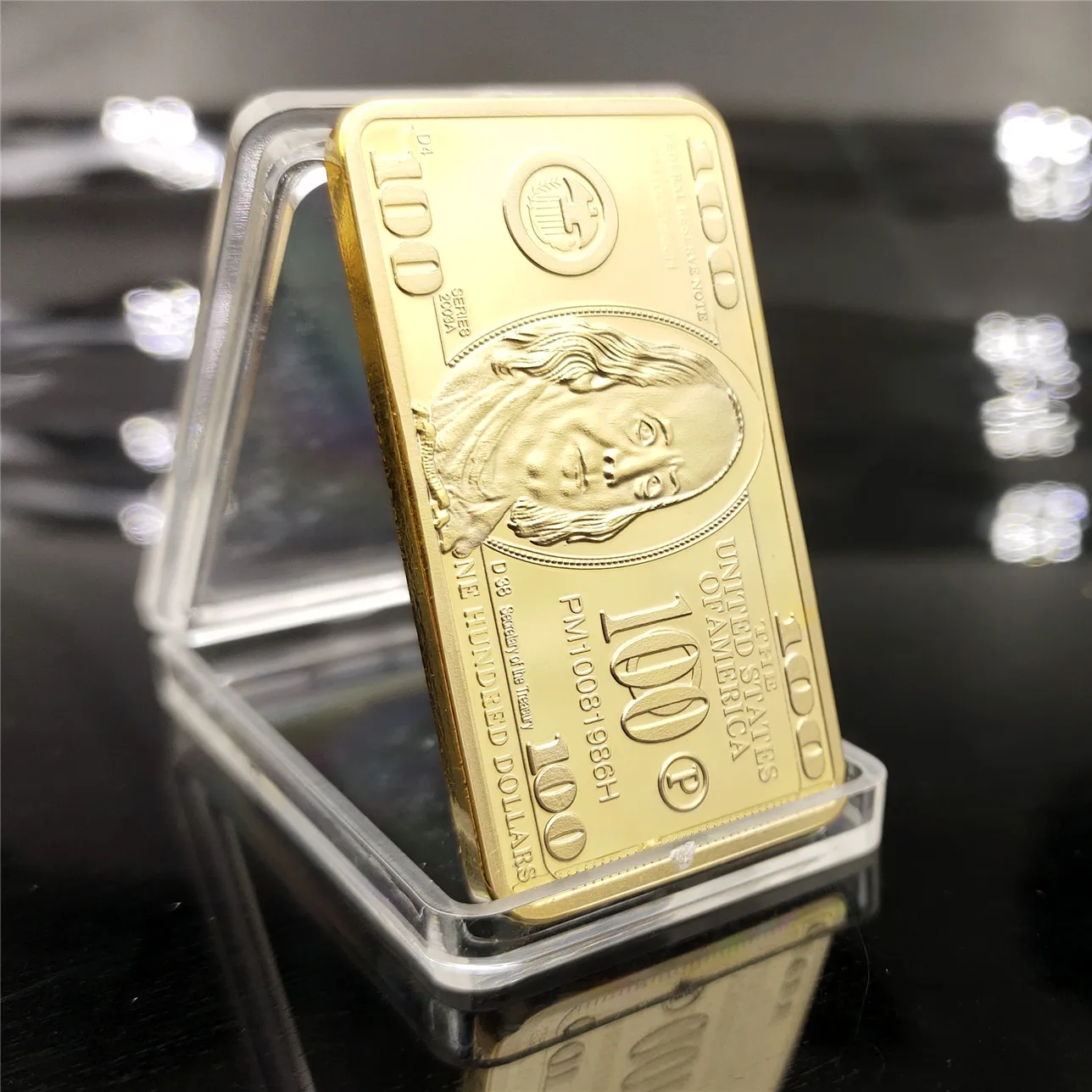 Collectible gold-toned bars and coins have long captured the fascination of enthusiasts, history buffs, and gift-givers worldwide. This USA 100 Dollar Bullion 24k Gold Bar stands out as a unique memento that pays tribute to American currency while offering a stunning conversation piece. Plated to resemble 24k gold and housed in a protective capsule, this commemorative item is perfect for showcasing in your home or office, gifting to a friend or colleague, or simply adding to a collection of novelty coins and bars. Below, explore how this souvenir merges patriotic motifs, artisanal design, and practical packaging into a meaningful keepsake.
