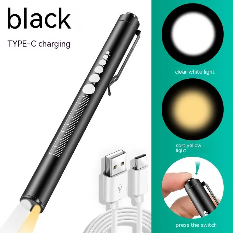 USB Charging Medical Flashlight: Dual Yellow and White Light for Precise Illumination