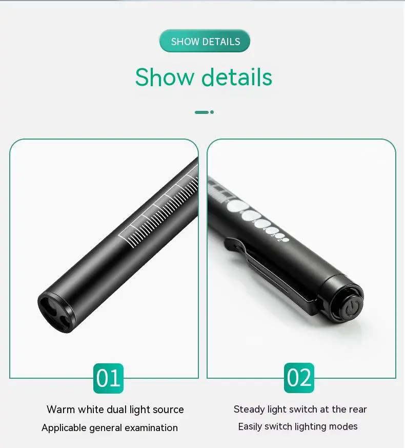 Precise, Adjustable Lighting: The USB Charging Medical Flashlight offers dual light sources, allowing you
