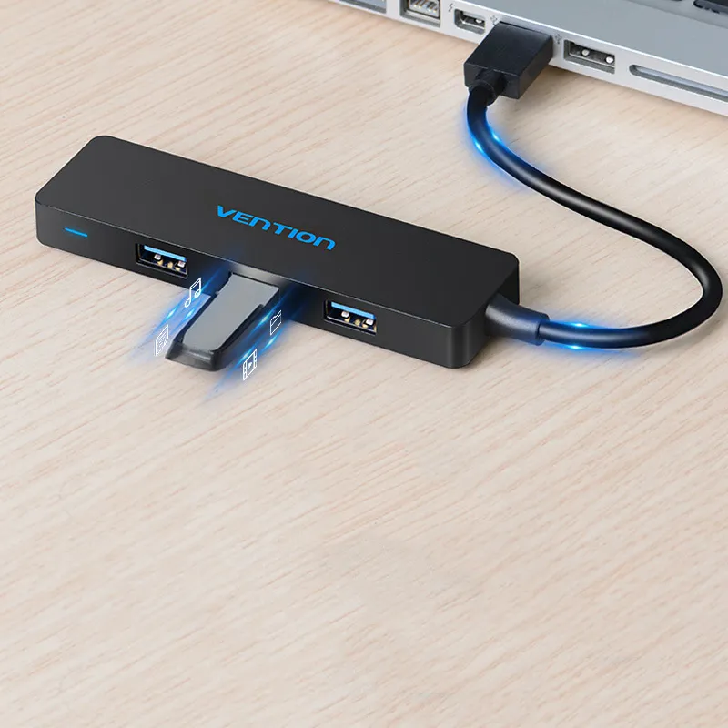 With multiple USB 3.0 ports (typically 4 or more), this expansion hub allows you to connect various USB devices such as external hard drives, flash drives, printers, keyboards, mice, and more. This multi-port design helps you avoid constantly plugging and unplugging cables, making your workspace more organized and efficient.