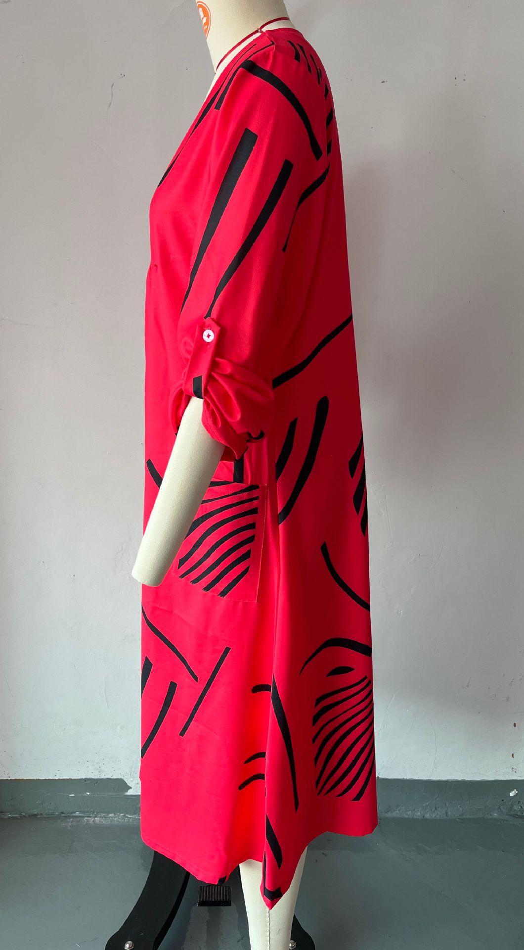 Comfort and Fit The Fashion Printed V Neck Long Sleeve Dress is designed with a relaxed fit, making it easy to wear for extended periods. The soft fabric drapes beautifully over the body, providing a comfortable and flattering silhouette. The loose, straight design ensures that the dress is not too tight or restrictive, allowing you to move freely and confidently. The V-neckline adds a touch of elegance, making this dress suitable for both casual and more formal occasions.