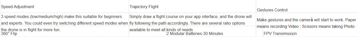 Intelligent Interactive Drone: The drone is integrated with smart voice control and gesture control. You can speak to control the flying direction, or pose to the camera to trigger photo/video shooting, adding fun to your flight30 Min Flight Time: You can enjoy a maximum of 30-mins flight time with one powerful modular battery. The package comes with a storage box and 2pcs batteries, extending your flight time to 30mins amazingly. Besides, the modular battery is easier to install and safer to use.
