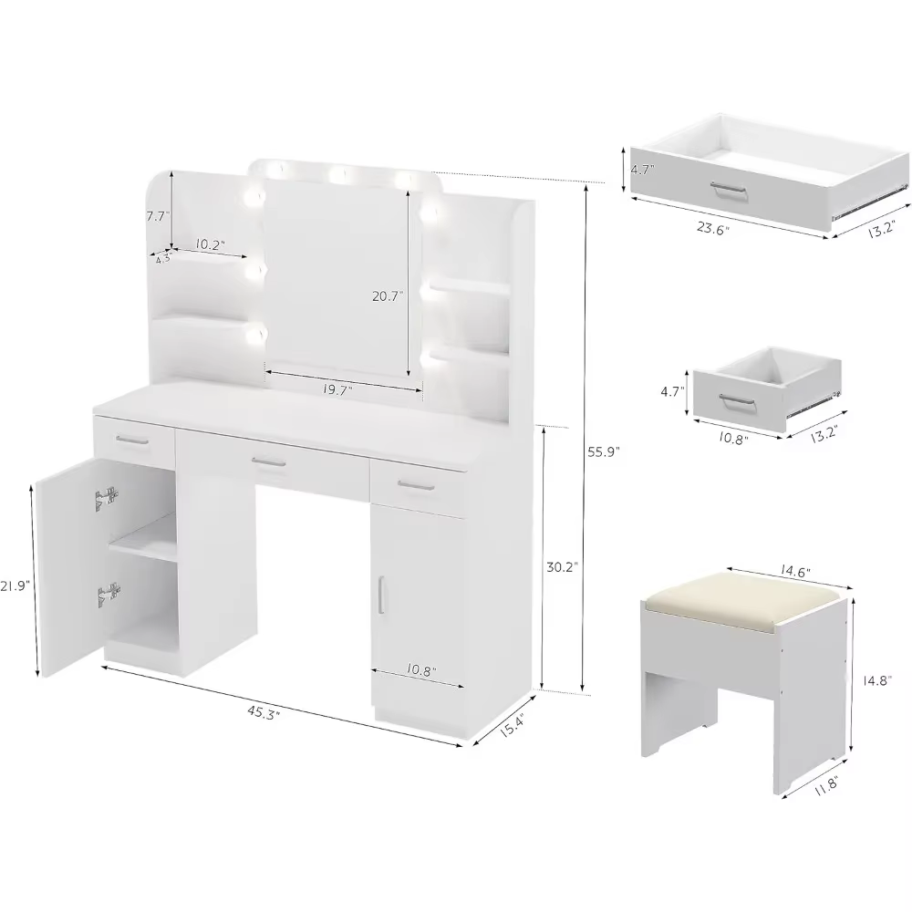 - 45.3" vanity desk with mirror and lights for optimal lighting