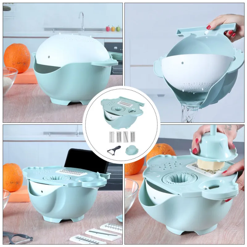 The Vegetable Mandoline Cutter Fruit Slicer Multifunctional Potato Peeler Carrot Grater Kitchen Accessories With Drain Basket is an essential tool for anyone who enjoys cooking with fresh vegetables and fruits. This versatile kitchen gadget simplifies your food preparation process, making it quicker, easier, and more efficient. Whether you’re slicing, peeling, or grating vegetables like potatoes and carrots, this mandoline cutter ensures precise cuts every time. Additionally, it features a built-in drain basket, allowing you to rinse your ingredients directly in the basket, making meal prep even more convenient.
