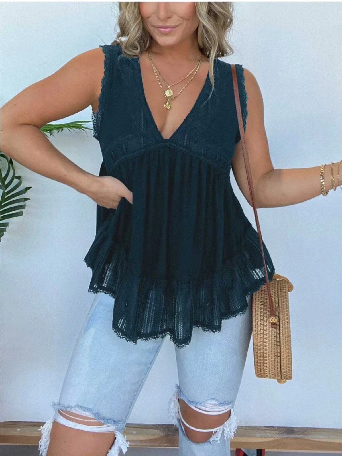 Indulge in the luxurious allure of our Velvet Lace V-neck Top, a masterpiece crafted for the modern woman who dares to embrace her femininity with grace and style. Prepare to captivate hearts and turn heads as you step into a world where elegance meets sophistication.