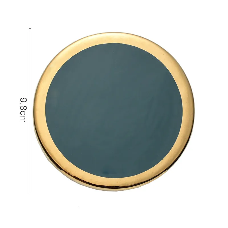What is the size of the coaster? The Vintage Green Gilded Ceramic Coaster typically measures around 4-5