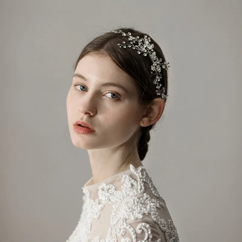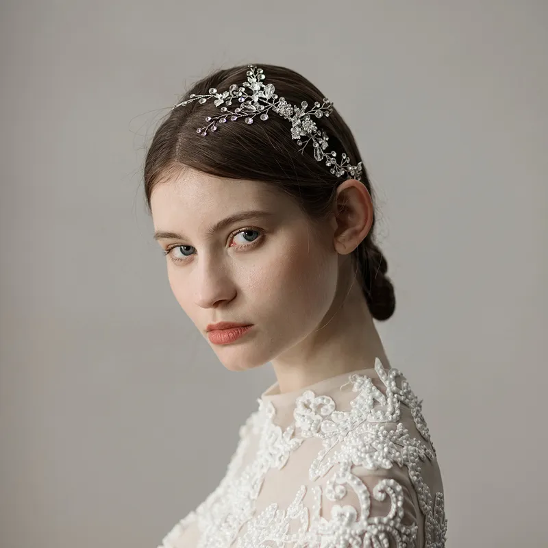 This bridal hair comb is versatile and can be incorporated into various hairstyles, whether you choose to wear your hair up in an elegant bun, down in soft curls, or in a half-up, half-down style. The comb can be positioned on the side of the head, at the back, or nestled into the hair for a more subtle effect. Its versatile design ensures that it works with a variety of bridal looks, whether you opt for a sleek, modern hairstyle or a romantic, vintage-inspired updo.