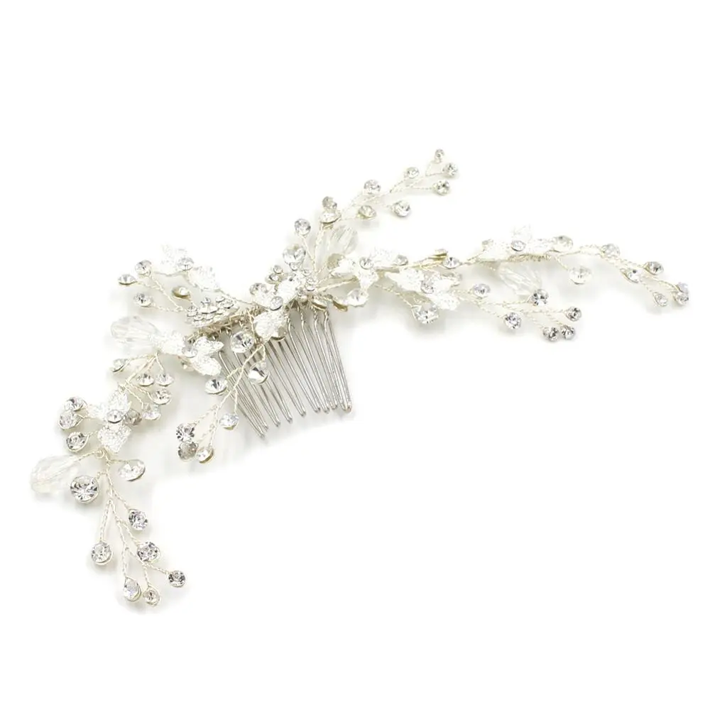 The comb is adorned with sparkling crystal accents that catch the light beautifully, adding a subtle yet glamorous touch to your bridal look. The crystals enhance the overall design, making it the perfect complement to a wedding gown or veil. The combination of the vintage leaf design and the crystal embellishments brings a perfect balance of romance and elegance, making it an eye-catching accessory that adds a touch of sparkle to your wedding hairstyle.
