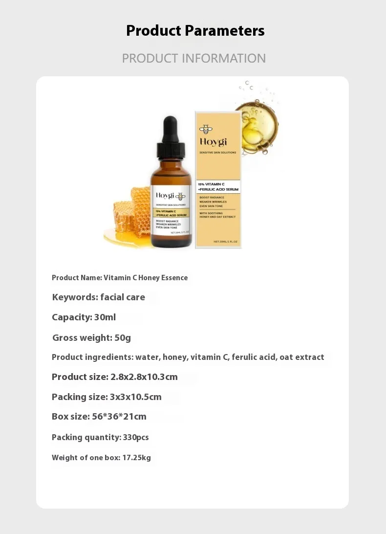 Introducing Vitamin C Honey Firming Skin Facial Care — an enriching and revitalizing facial care product designed to rejuvenate, firm, and brighten your skin. Infused with the powerful antioxidant benefits of Vitamin C and the soothing, hydrating properties of honey, this facial care formula works to reduce the appearance of fine lines, boost collagen production, and restore a youthful, radiant glow to your skin. Whether you're targeting sagging, dullness, or dryness, this powerful duo will transform your skin, leaving it smooth, hydrated, and visibly firmer.