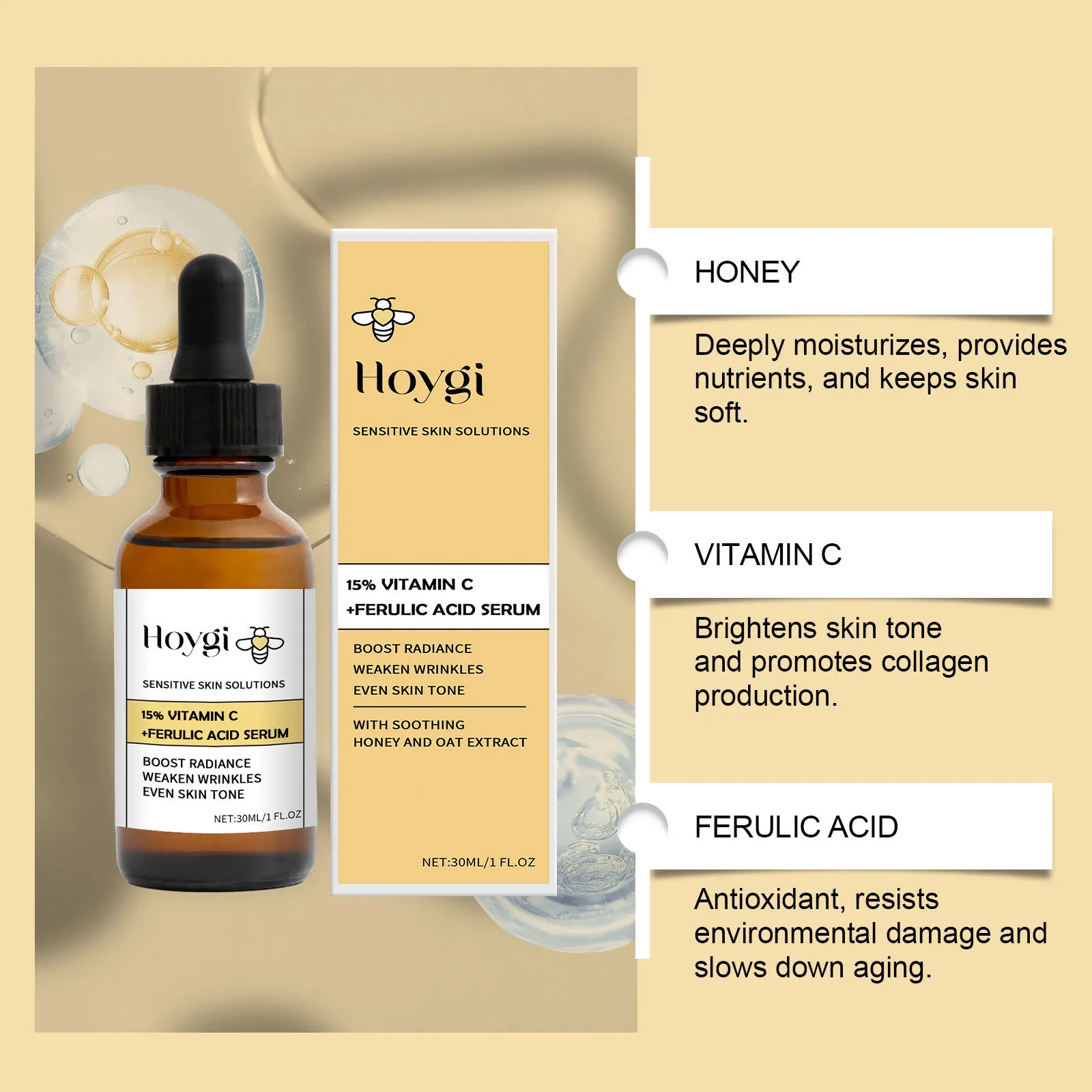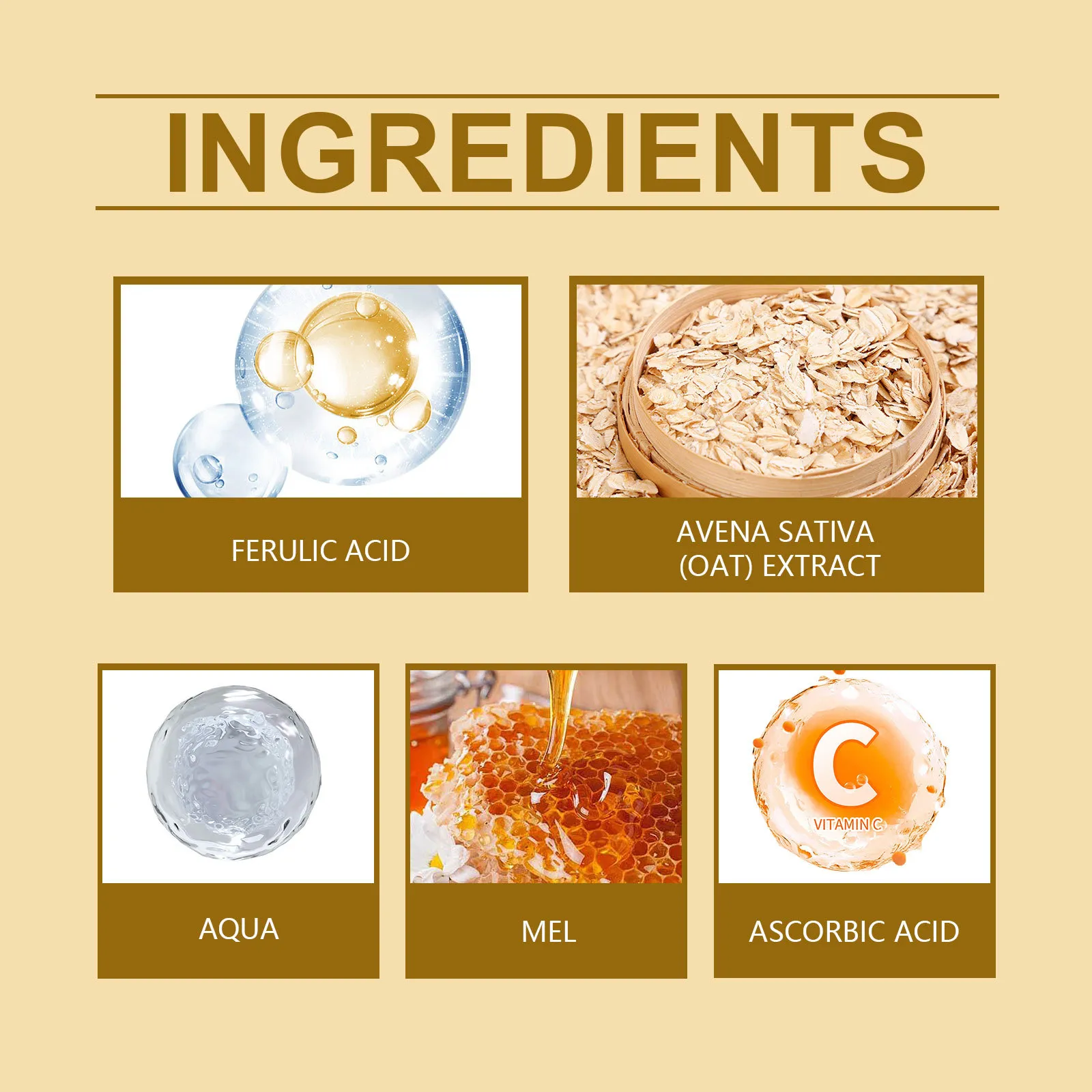 Product Ingredients: Water, Honey, Vitamin C, Ferulic Acid, Oat Extract