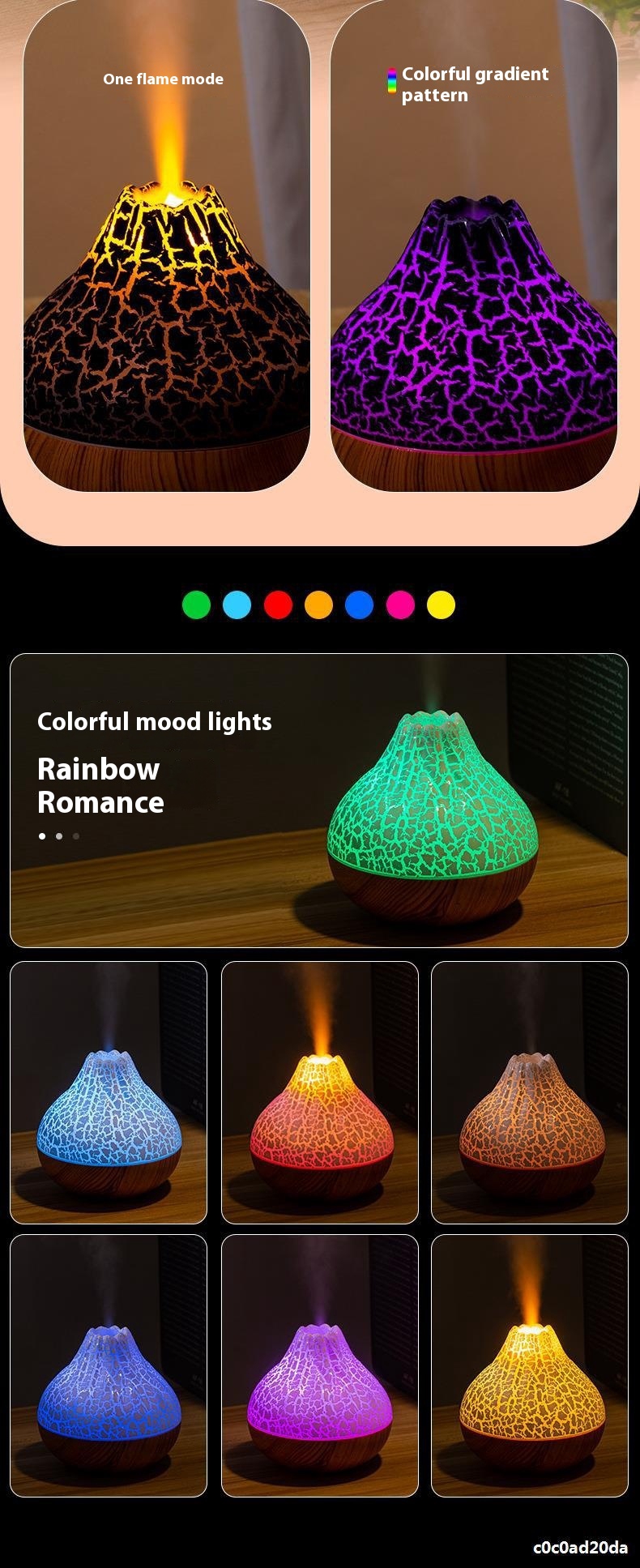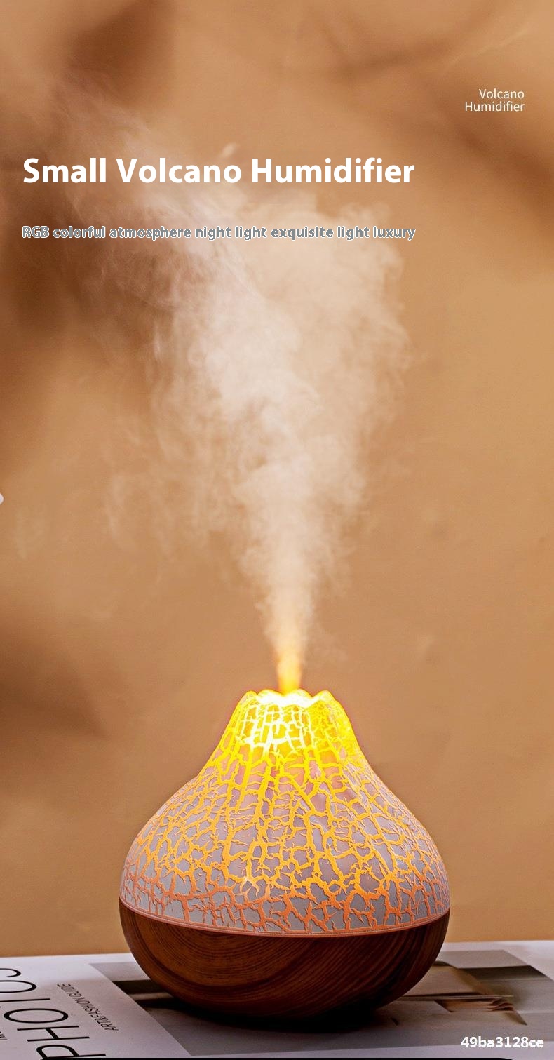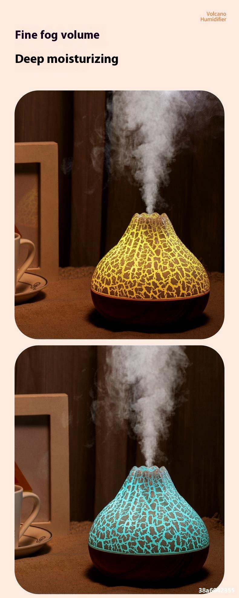 Volcano Humidifier Wood Grain Fog Seven-color Ambience Light