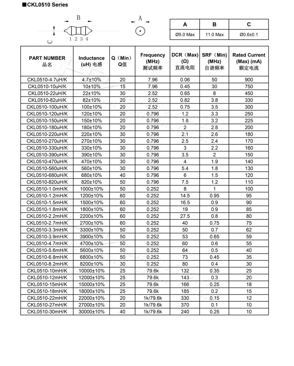 Inductance: 0.22uH-10mH