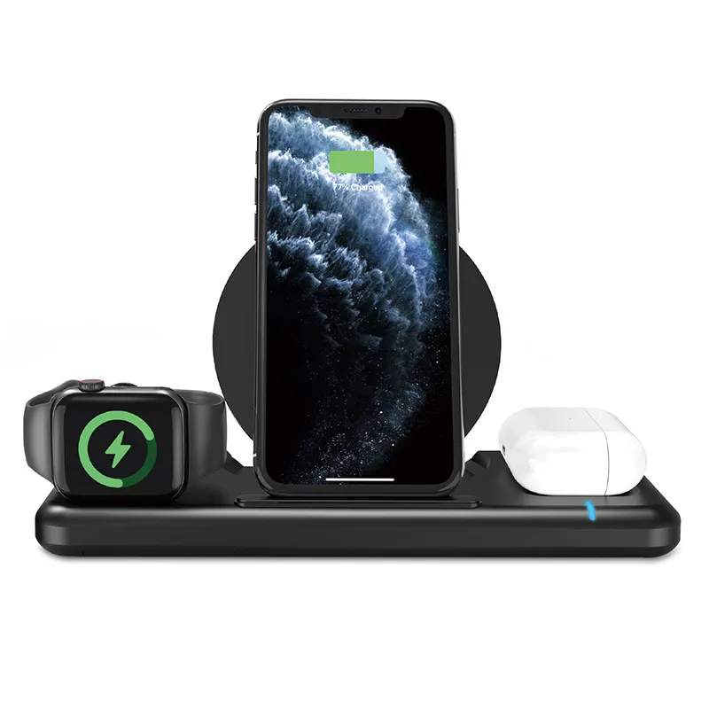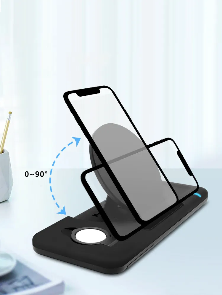 The Watch Holder Magnetic Qi Three-in-One Wireless Charger is the perfect all-in-one charging solution for modern users. With the ability to charge your smartphone, smartwatch, and wireless earphones simultaneously, it offers both convenience and efficiency. Its fast charging, magnetic watch holder, and compact design make it an ideal choice for anyone looking to declutter their space and streamline their charging routine.