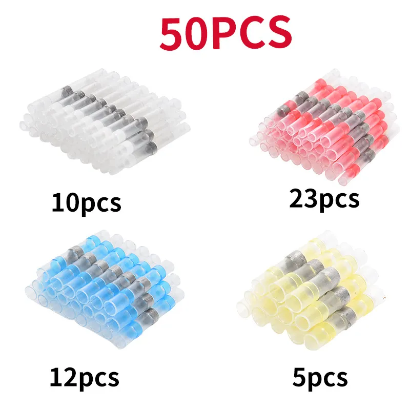The connectors include a solder sleeve that melts and bonds wires securely, ensuring a reliable electrical connection.