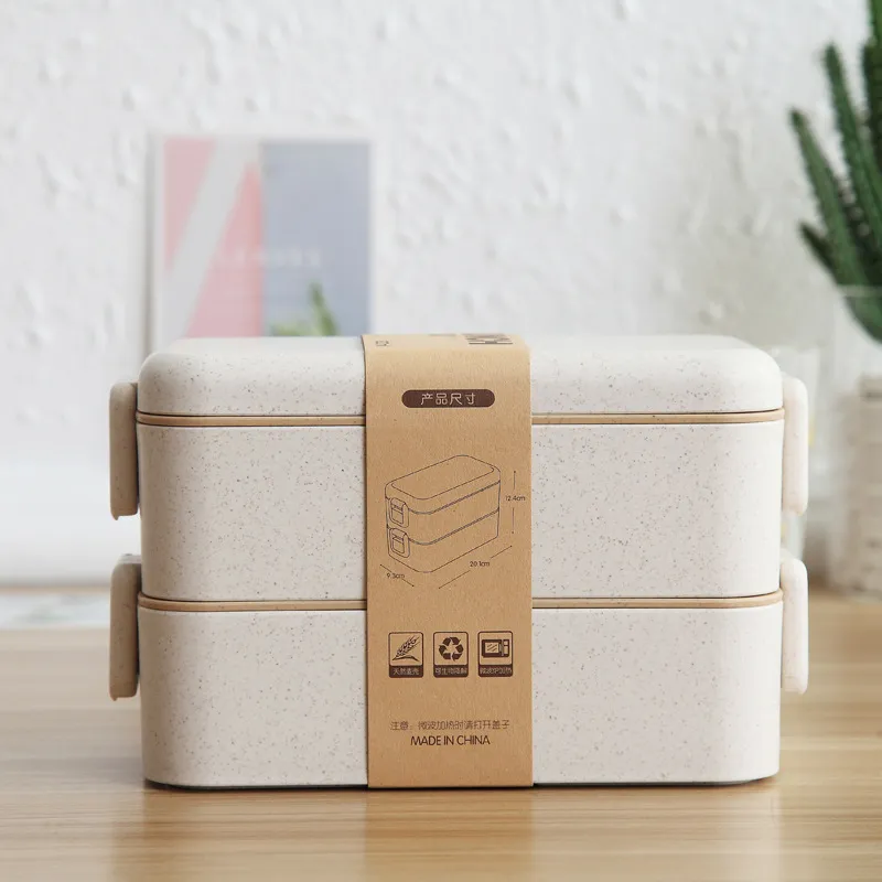 Wheat Straw Lunch Box Japanese Tableware Lunch Box Microwave Oven Student Multi-layer Lunch Box Sushi Box Double-layer Lunch Box Custom Logo