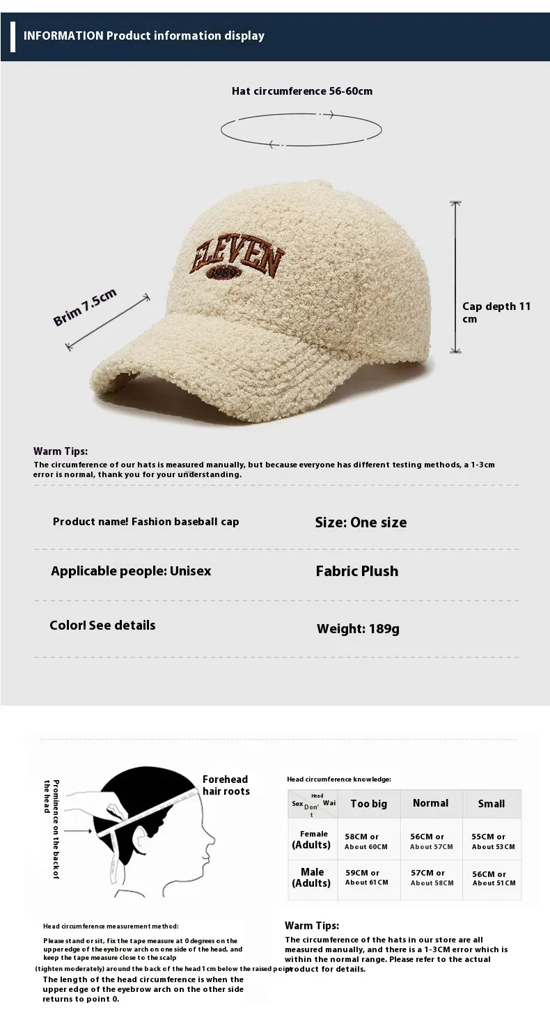 Product Description: Winter Lambskin Thickened Warm Baseball Cap