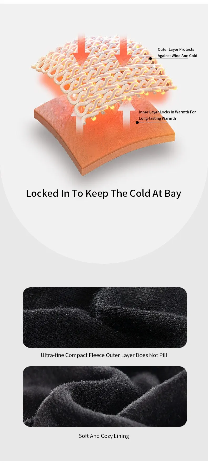 2. Outer layer protects against wind and cold, while the inner layer locks in warmth and keeps you warm for a long time.
