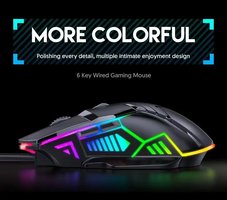 Engineered with a silent click mechanism, this mouse allows for quiet operation, making it ideal for shared spaces or late-night gaming without disturbing others. The ergonomic shape fits comfortably in the hand, reducing strain during extended usage, and its high-resolution optical sensor guarantees smooth tracking on various surfaces. Built for versatility, this 6D luminous mouse is perfect for both e-sports gamers who demand accuracy and speed, and office users who need reliability and comfort throughout the day. The LED lights add a touch of personality to your setup, with vibrant colors that create a captivating and immersive environment.