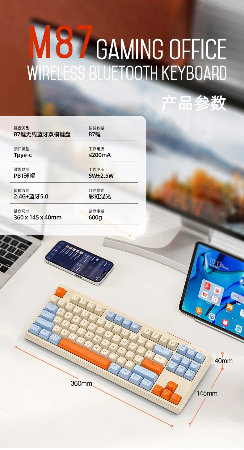 version, free Wolf M87 wireless Bluetooth Dual-mode keyboard blueberry version, free Wolf M87 wireless Bluetooth Dual-mode keyboard coffee