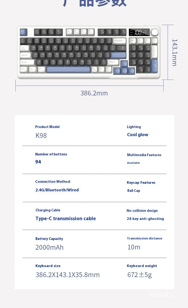 Keyboard size: 386.2X143.1 × 35.8mm