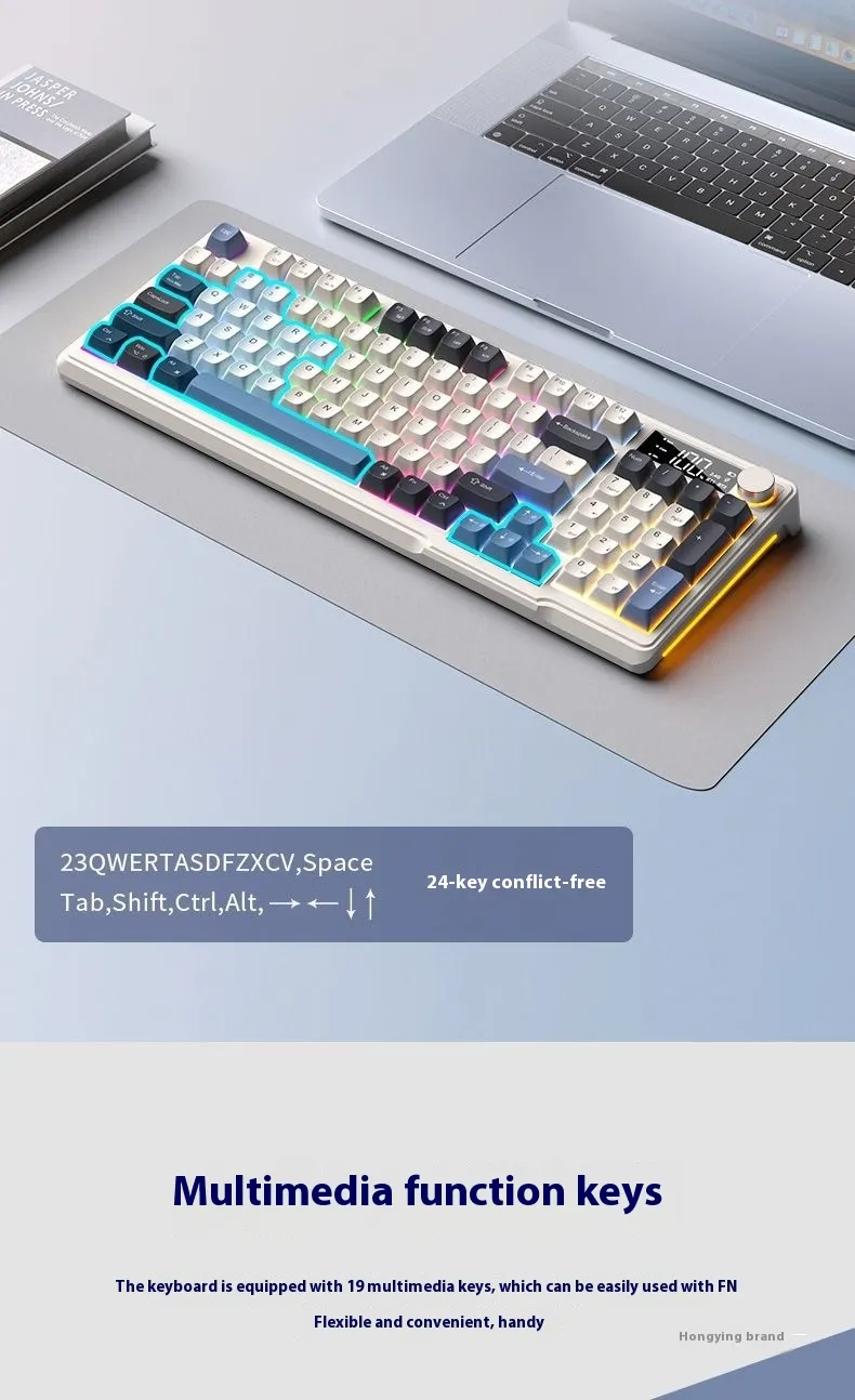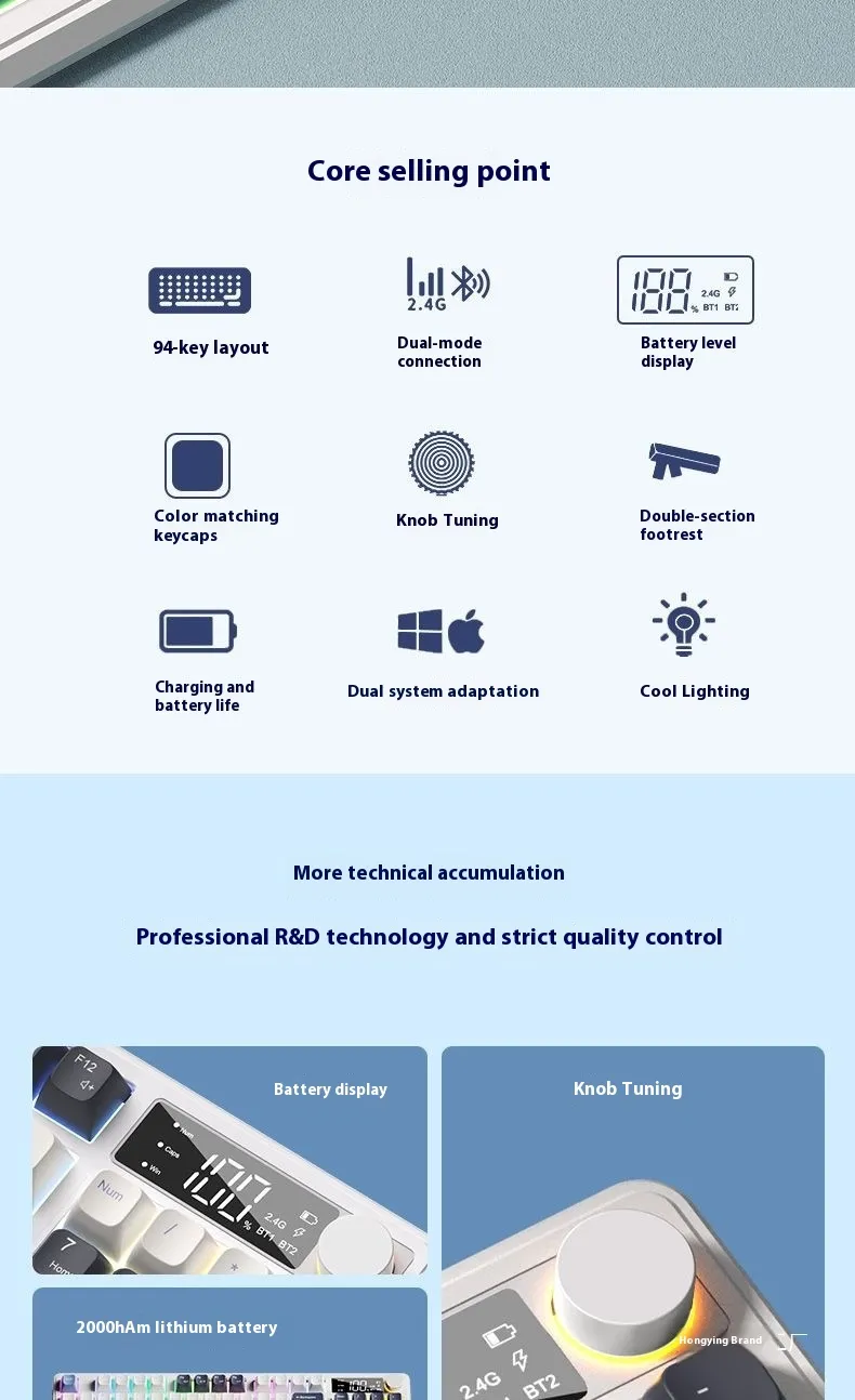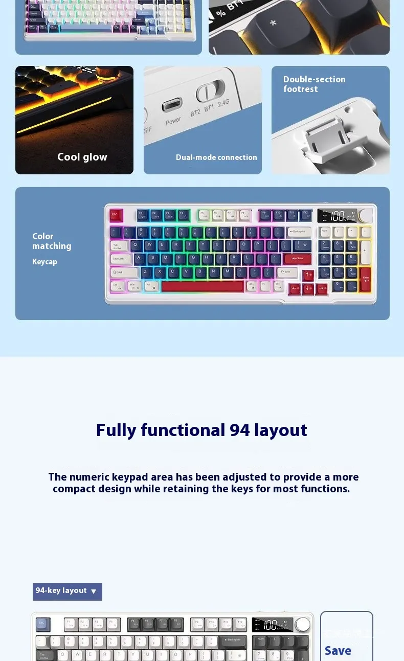 With wireless Bluetooth connectivity, you can enjoy a clutter-free desk setup and fast, reliable pairing with computers, laptops, tablets, and other Bluetooth-enabled devices. Its compact and ergonomic design enhances comfort for prolonged use, while the stylish mechanical-inspired aesthetics elevate your workspace look.