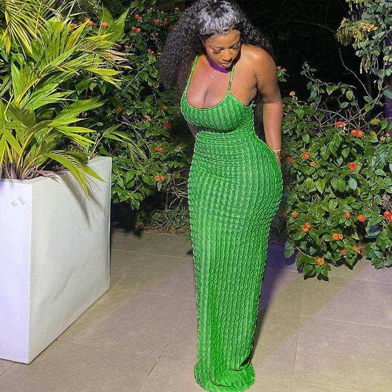 Women's Backless Lace-up Temperament Pure Color Long Dress