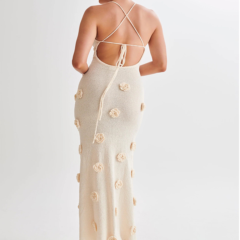 Women's Braces Skirt Three-dimensional Flower Knitted Backless Lace-up Dress