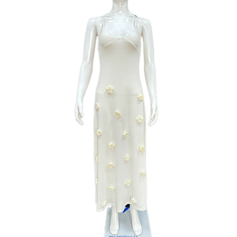 Elevate your fashion game with our Women’s Braces Skirt Three-dimensional Flower Knitted Backless Lace-up Dress. This unique piece combines intricate details and modern design, perfect for making a statement at any event.